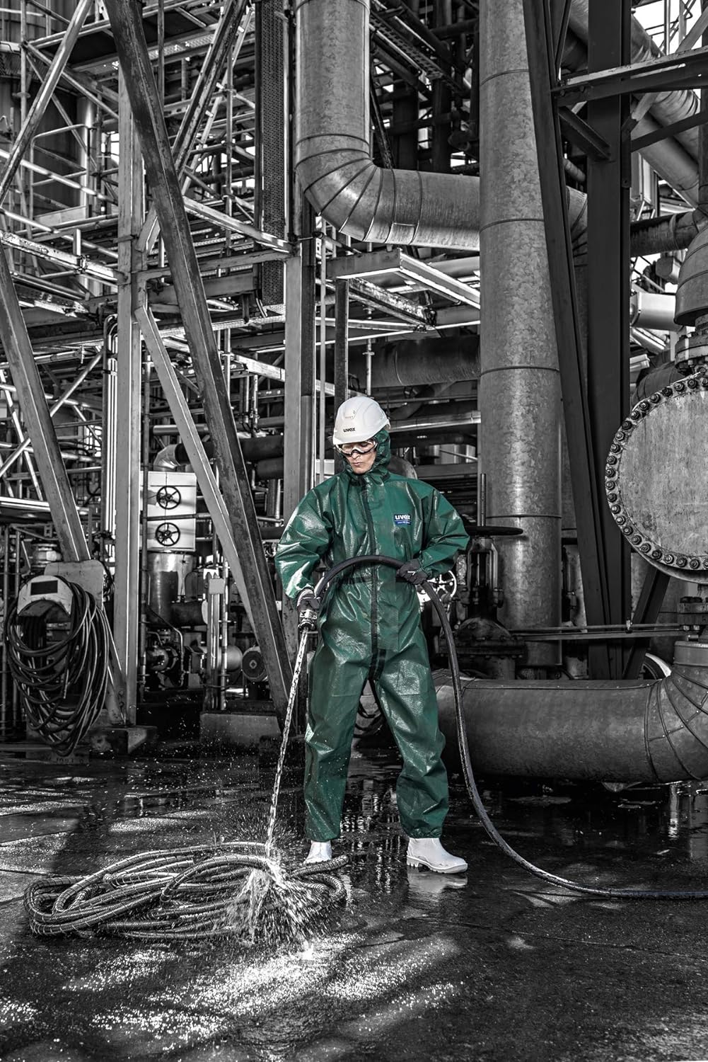 PRODUKTBESCHREIBUNGEN Einweg Overall mit hoher Wirksamkeit der Barriere durch extreme Stabilität der Materialien kombiniert mit einer Ultraschallversiegelung und Versiegelung sorgt für maximalen Schutz.