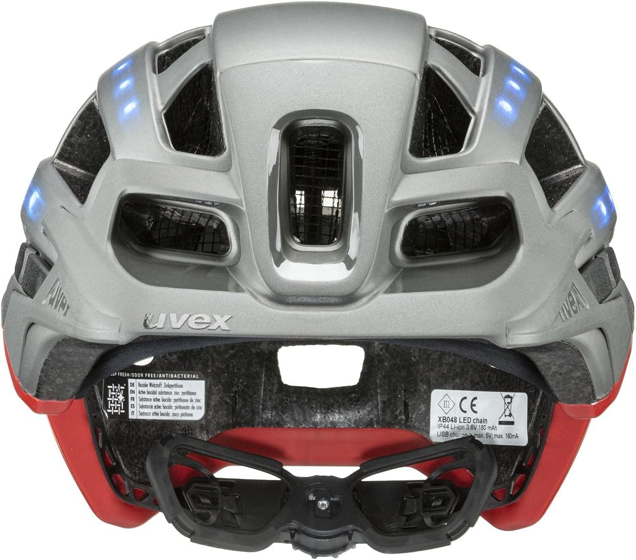 - Für noch bessere Sichtbarkeit sorgen 40 unter der Helmschale integrierte LEDs - per USB wiederaufladbar