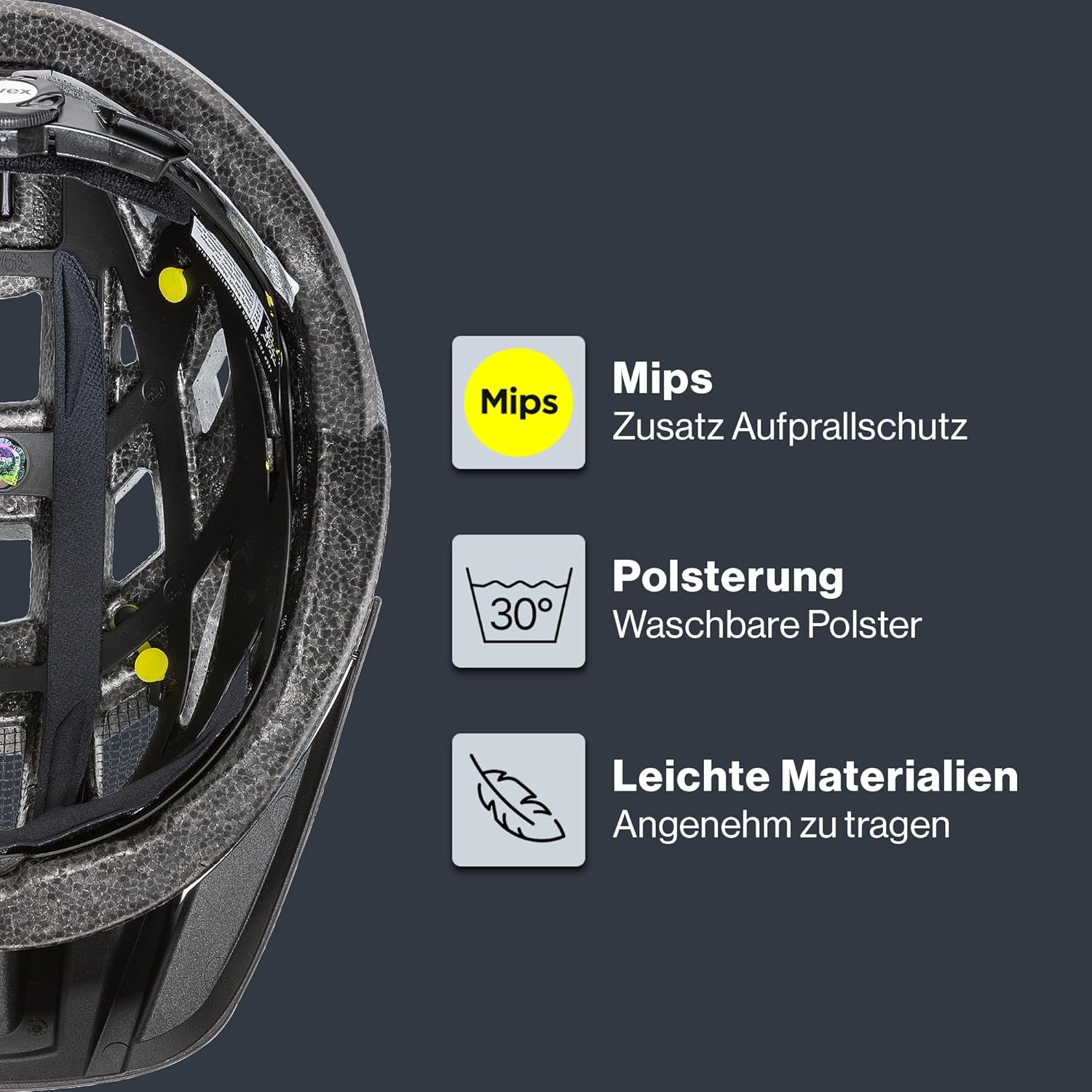 - Mehr Sicherheit und höhere Dämpfungsfähigkeit bei schrägen Aufprallszenarien mit starken Rotationsbewegungen durch die verbaute MIPS-Technologie
