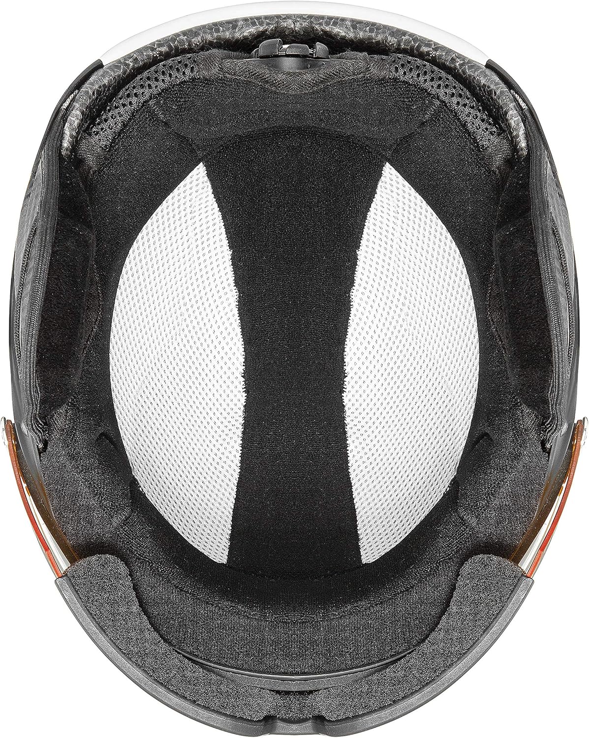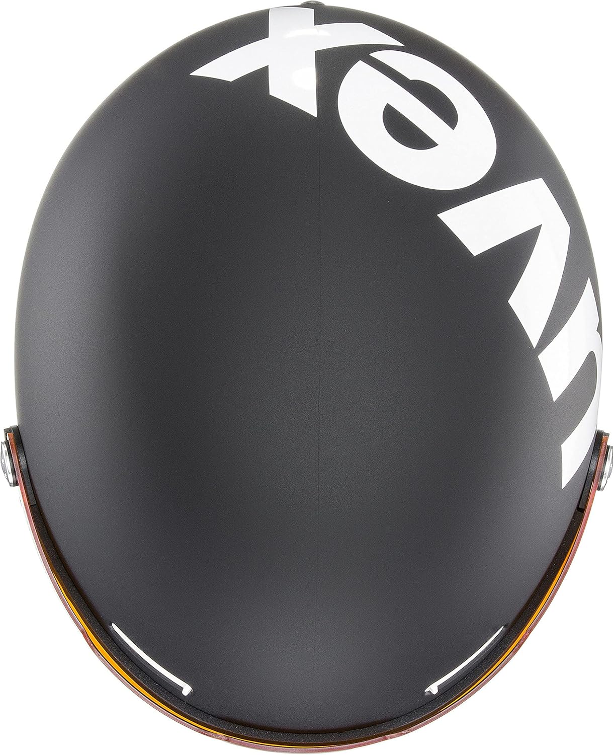 PRODUKTBESCHREIBUNGEN PRODUKTBESCHREIBUNG Der Hartschalen-Visierhelm Uvex HLMT 500 visor chrome LTD aus der Uvex iconic Kollektion ist ein echter Hingucker. Die Uvex chrome Beschichtung hat eine lange Tradition, ist in dieser Form einzigartig und wurde bereits 2001 im Alpinen Skiweltcup eingesetzt, um die Uvex Produkte optisch von der Masse abzuheben. Designliebhaber und extrovertierte Skifahrer ziehen mit dem verspiegelten und progressiv geformten Visier alle Blicke auf sich. Es verspricht dank einem extra-weiten Sichtfeld auch auf engen Pisten besten Überblick. Ganz einfach lässt es sich mit einer Hand öffnen und schliessen. Vorgeformte Polster an der Unterseite des Visiers passen sich der Gesichtskontur von der Nase bis zu den Ohren ideal an. Das verspricht vor allem Zugfreiheit und erhöht den Tragekomfort, da nichts drückt oder kneift. Neben der Weite lässt sich der Uvex HLMT 500 visor dank IAS-3D-System exakt an die individuelle Kopfhöhe anpassen. Die bewährte Uvex supravision-Beschichtung verhindert auch bei widrigen Wetterbedingungen zuverlässig Beschlagen des sphärischen Visiers und verleiht jederzeit Durchblick. Besonderheiten: Hartschalen-Konstruktion, IAS-3D-Grössenverstellsystem, aktives Belüftungssystem, lasergold lite Visier mit Antifog-Beschichtung. MARKENBESCHREIBUNG Spitzenathlet oder Freizeitsportler. Wettkampf oder einfach so. Als einer der führenden internationalen Hersteller von Schutzprodukten mit Sitz in Fürth begeistert uvex mit wegweisenden Technologien und innovativen Produkten. Rund um die Uhr – seit mehr als 90 Jahren. Um das Beste für jeden Einzelnen herauszuholen. In der Freizeit, beim Sport oder im Beruf. Zum Schutz des Menschen.