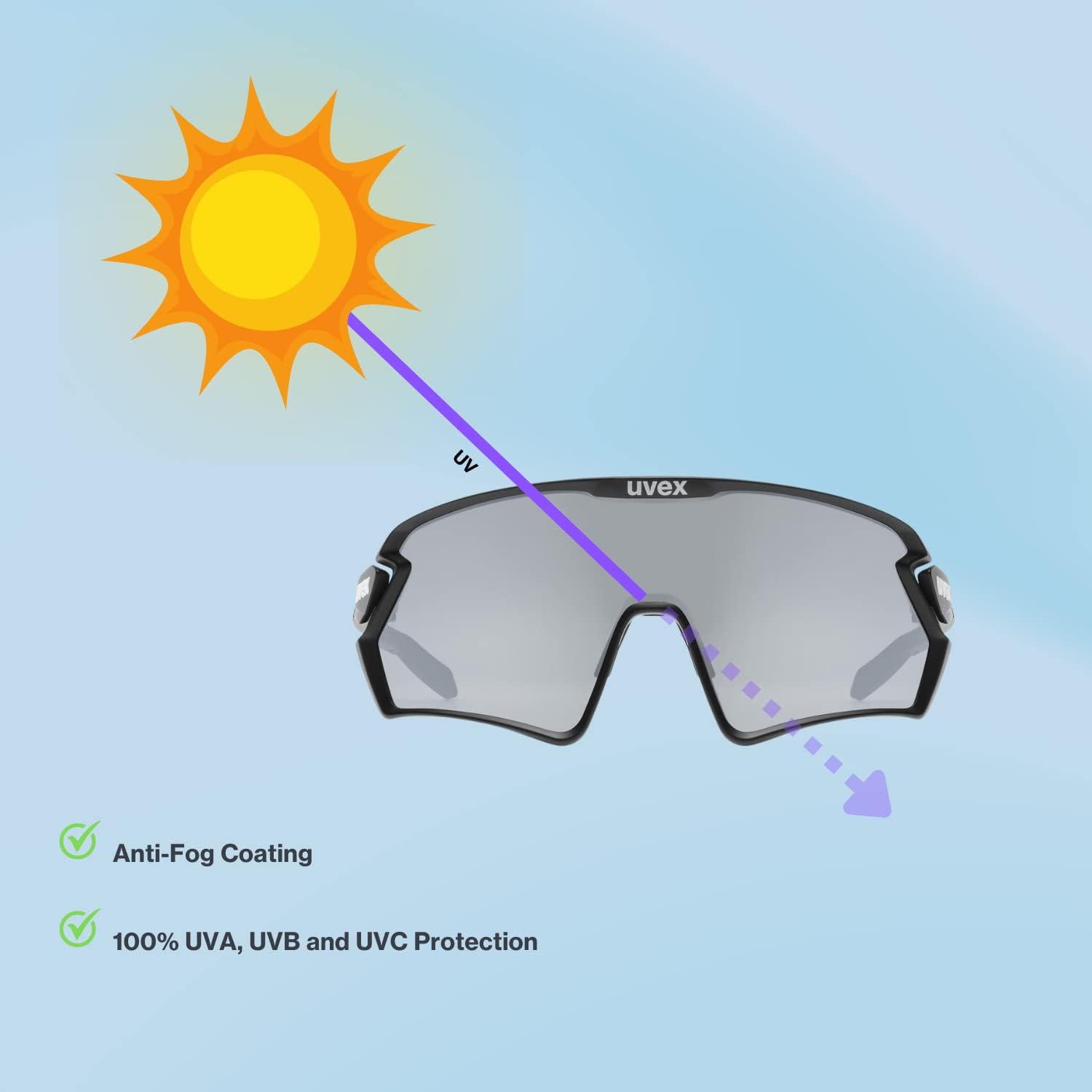 - Maximal beschlagfreie Sicht und optische Qualität in jeder Wettersituation dank der uvex supravision Anti-fog Beschichtung