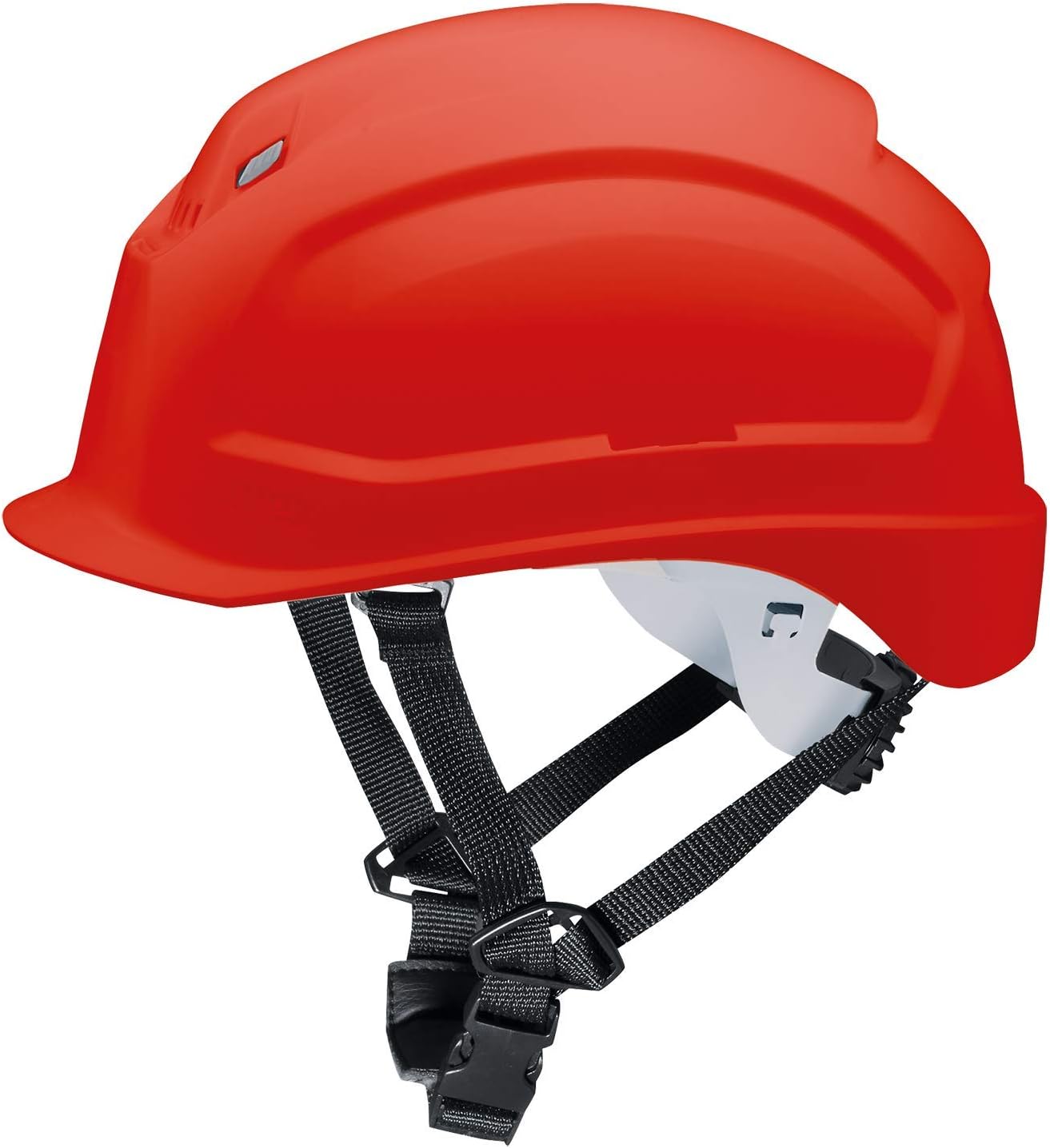 - Dieser Bauhelm verfügt über ein Drehrad zur stufenlosen Weitenregulierung & einen 4-Pkt.-Kinnriemen