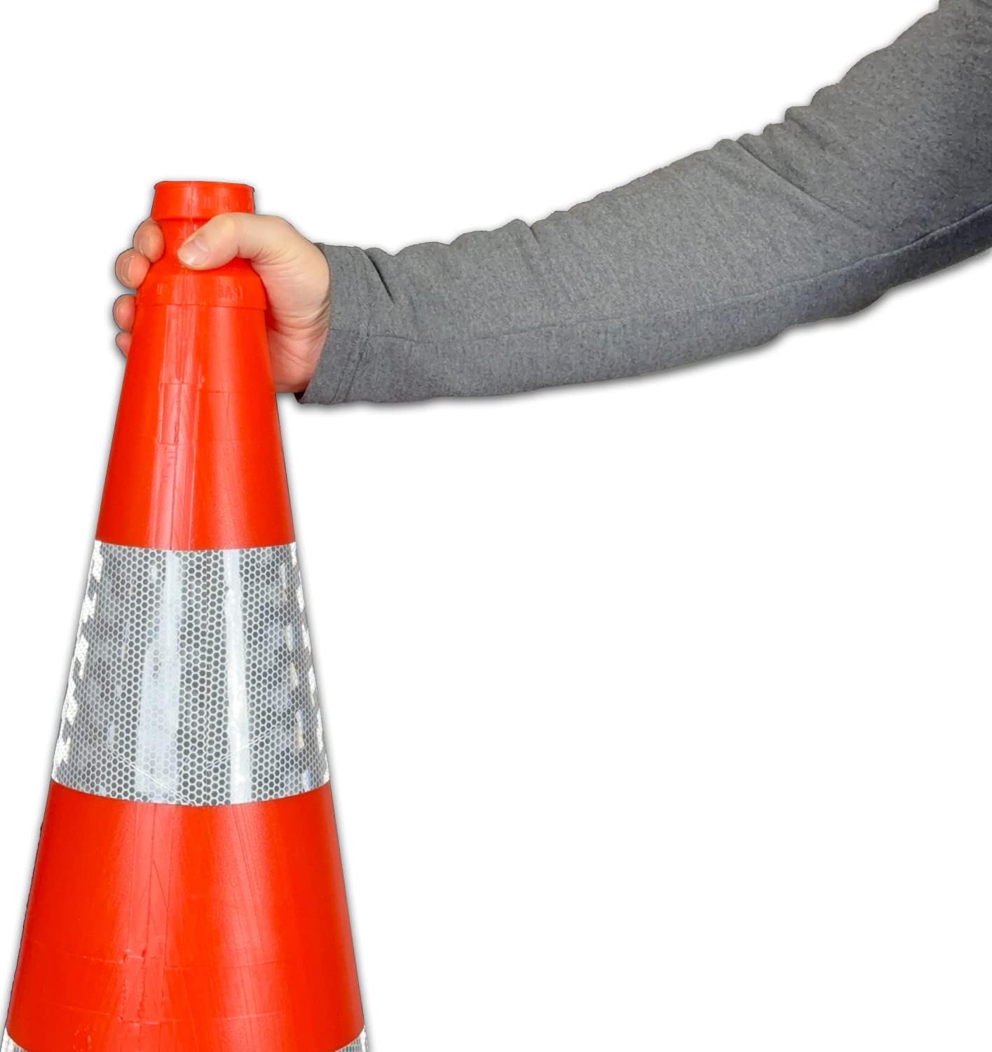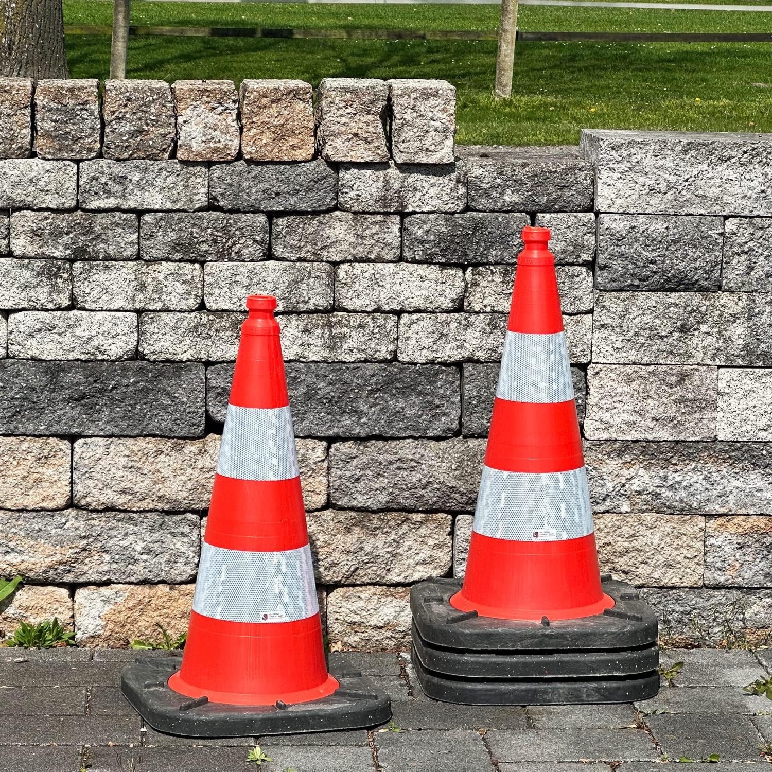 - MARKENQUALITÄT: UvV-Shop Leitkegel, 75 cm schwere Pylone (HD-PE, hart) Orange/ Schwarz - mit 2 Streifen RA2cM Folie, reflektierender Kegel - es wird nur Markenfolie von Avery oder Orafol verwendet