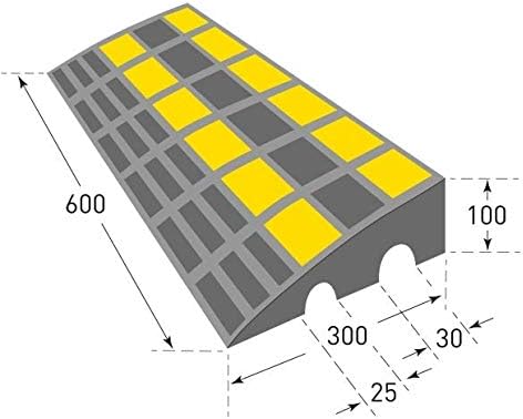 - Bordstein-Rampe Gummi LxB 600x300 schwarz gelb reflektierend 40t in 100 oder 150 mm Höhe - mit Schraubenset zur sicheren Befestigung