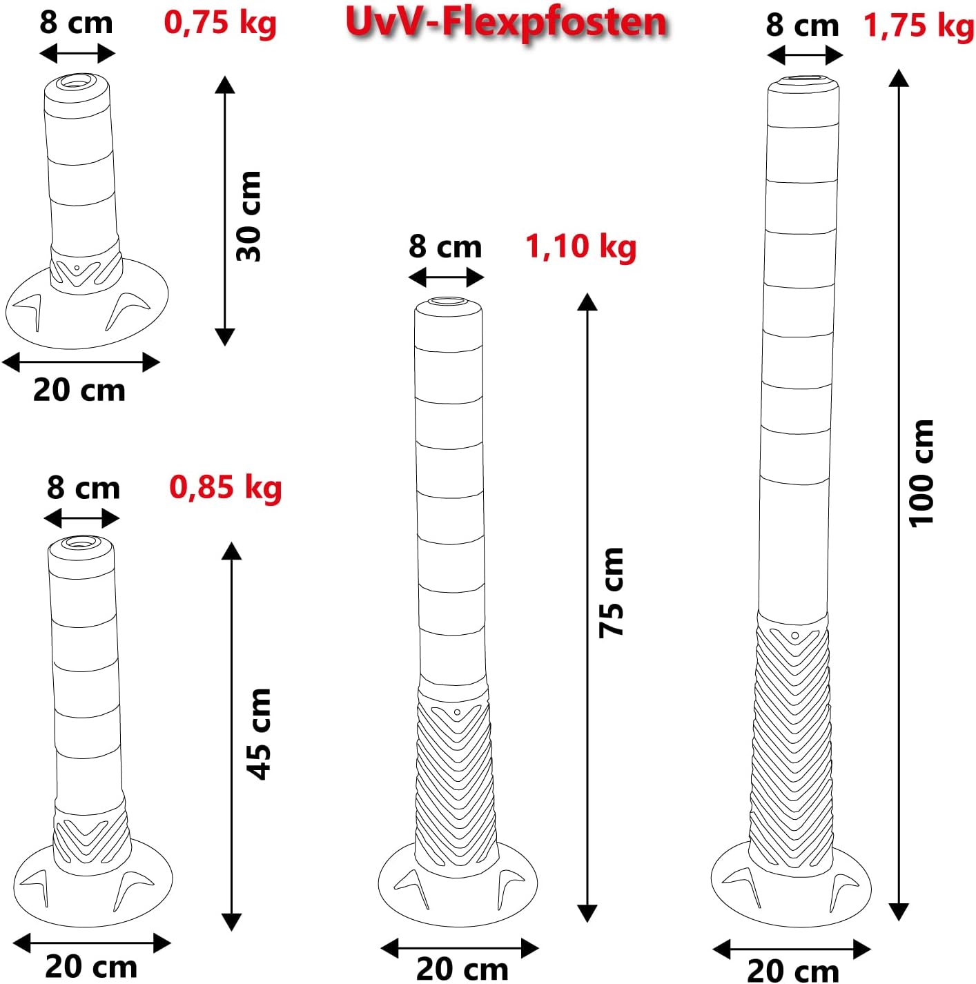 • Höhe 450, 750 oder 1000 mm je nach Auswahl - Fuss ca. Ø 230 mm | in 450 mm auch als Sparset mit 10 Pfosten und einfacher RA1 Folie