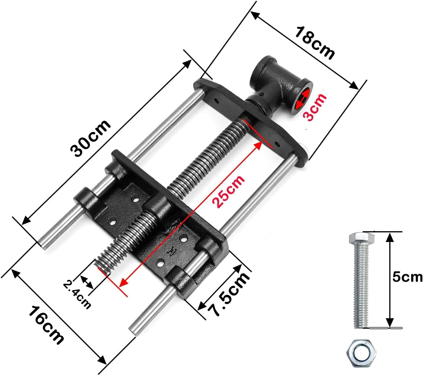 - 【Grösse des Schraubstocks】- Länge der Führungsschiene 300 mm / Breite, Breite der Stange: 160 mm. Schneckenlänge 250mm Schneckendurchmesser 24mm.