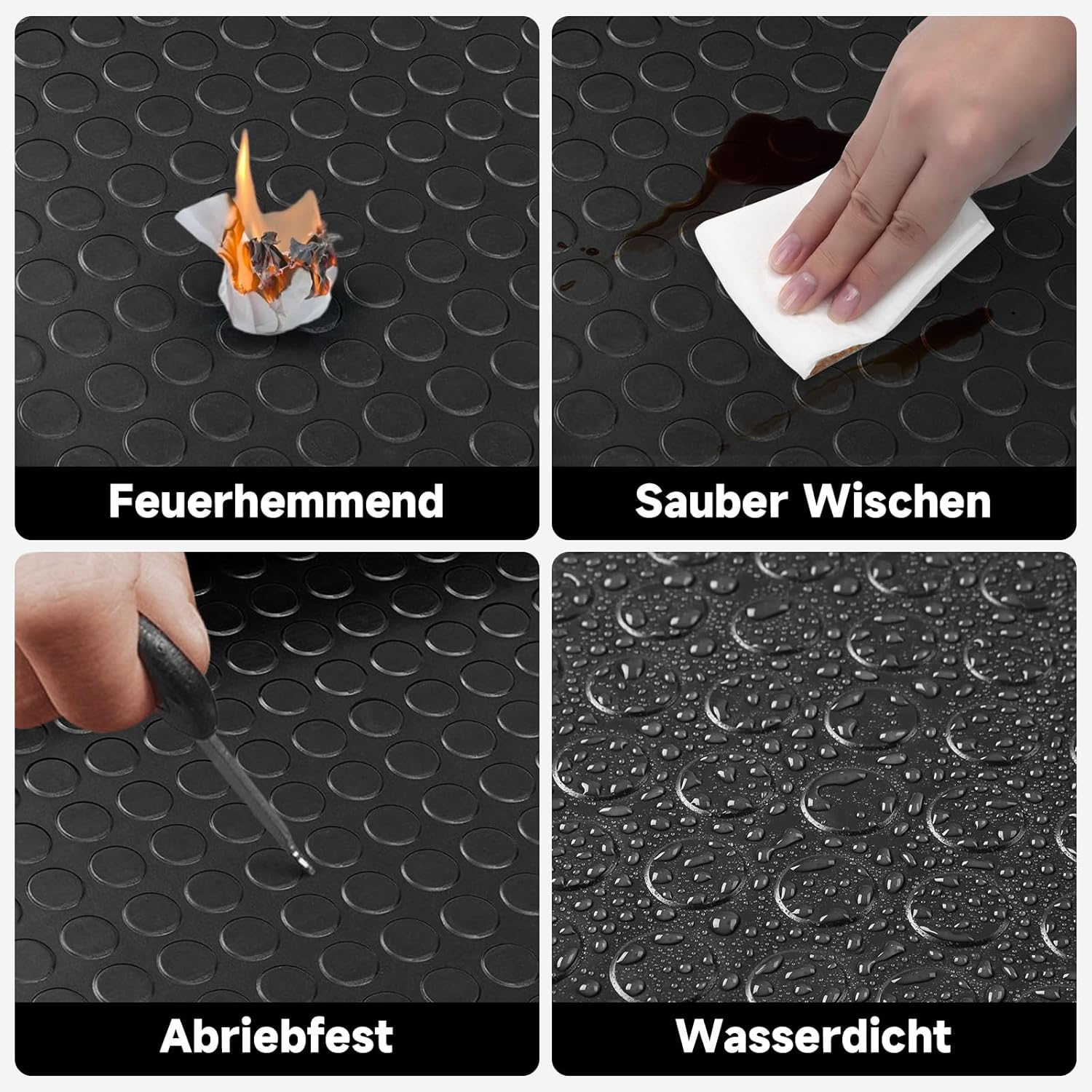 - RUTSCH- & VERSCHLEISSFEST---Spezielle Textur auf der Oberfläche ist rutschfest. Es ist schwere und kann in langer Zeit Auto und Menschen standhalten. Unverformt und langlebig. Schütz den Boden vor Kratzern, Schrammen und anderen Beschädigungenund auch die Menschen vor Unfällen.