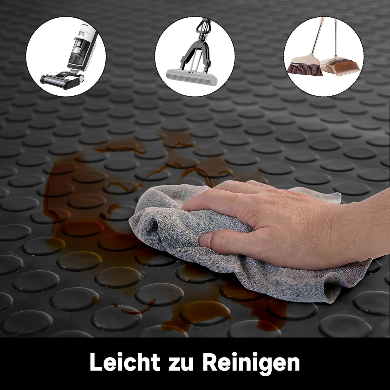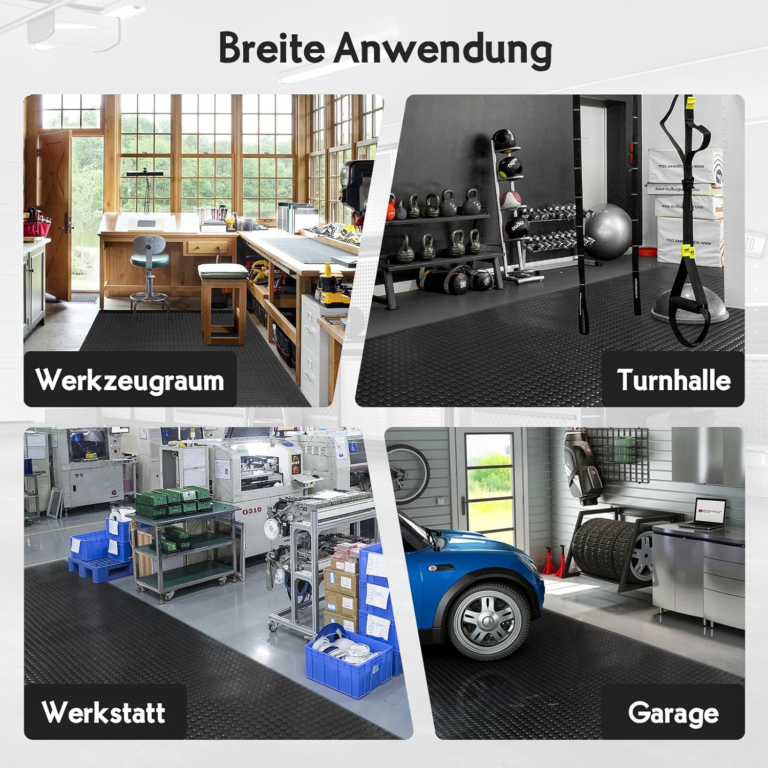 - VIELSEITIGE NUTZUNG---Die Gummimatte Schutzmatte können in zahlreichen gewerblichen und privaten Bereichen im Innen- und Aussenbereich verwendet werden. Geeignet für: Garage (als Matte), Anhänger (als Kellerfussboden). Es kann auch verwendet werden in: Lager, Lebensmittelindustrie, Krankenhaus, Sportzentrum, Fitnessraum, Durchgang.