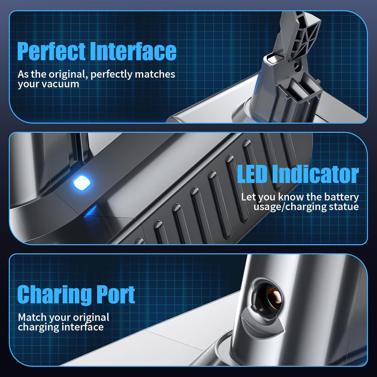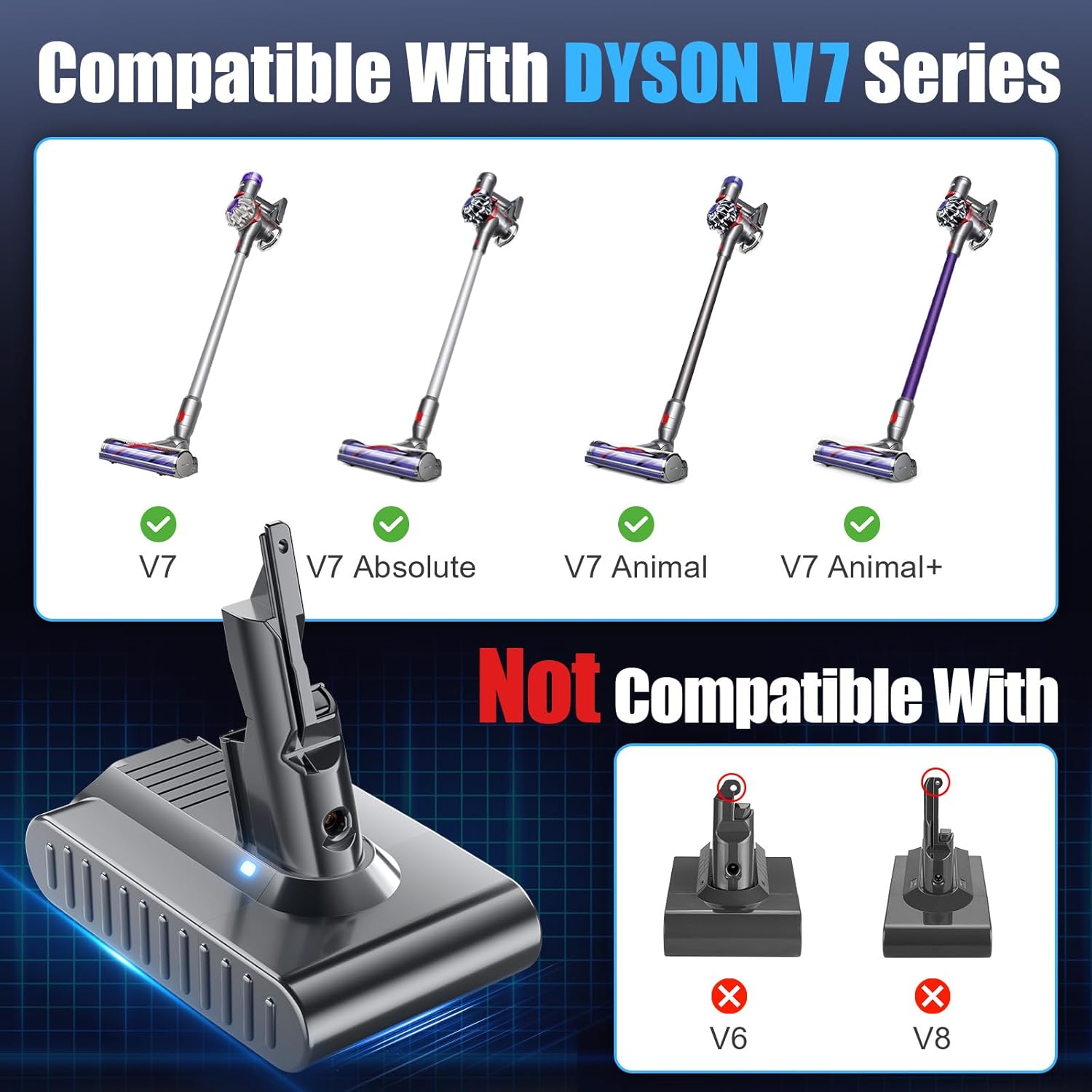 - 🔔【KOMPATIBEL MIT DYSON V7 STAUBSAUGER】Der V7 Akku für Dyson ist comfirmed zu gleich zu Dyson V7 Akku original. Perfekt kompatibel für Dyson V7 Animal, Animal Pro +, Absolute, Fluffy, Car + Boat, Mattress, Motorhead, Motorhead Pro, Allergy,