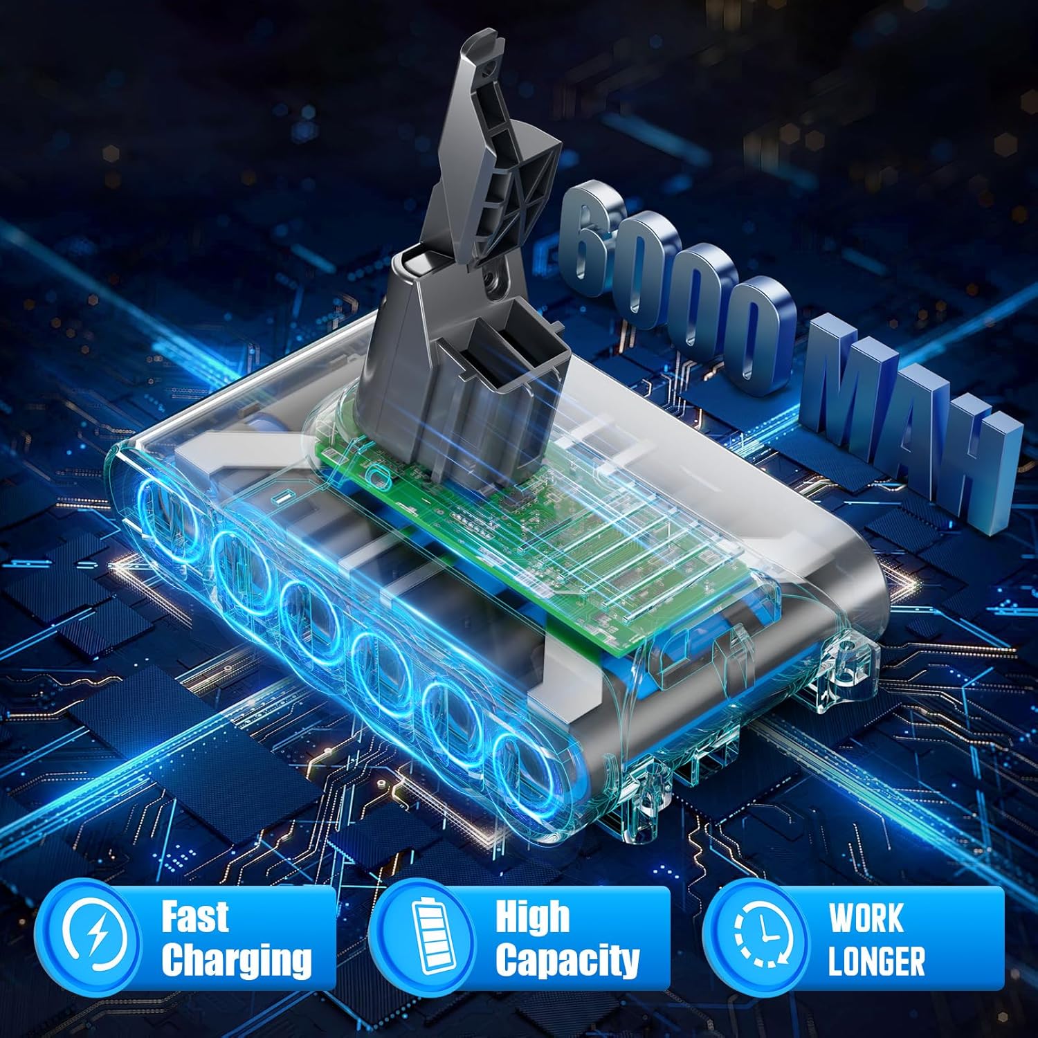 - 🔋【ERSATZ FÜR DYSON V7 AKKU ORIGINAL】Batterie-Typ: Lithium-Ionen Ersatzakku. Kapazität: 6000mAh. Kein Memory-Effekt, keine Verschmutzung und geringe Selbstentladung, kann nach Bedarf ohne Kapazitätsverlust geladen oder entladen werden.