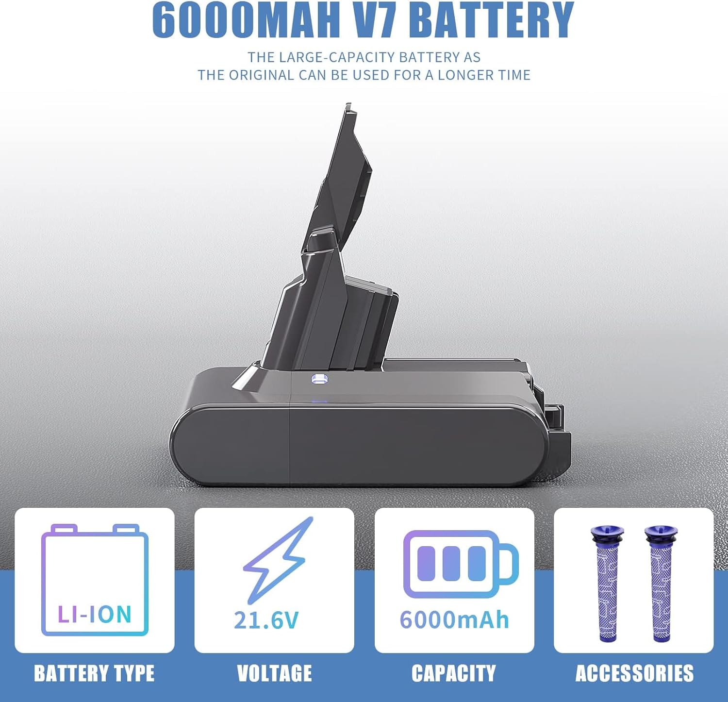 - 🔔【KOMPATIBEL MIT DYSON V7 STAUBSAUGER】Der V7 Akku für Dyson ist comfirmed zu gleich zu Dyson V7 Akku original. Perfekt kompatibel für Dyson V7 Animal, Animal Pro +, Absolute, Fluffy, Car + Boat, Mattress, Motorhead, Motorhead Pro, Allergy,