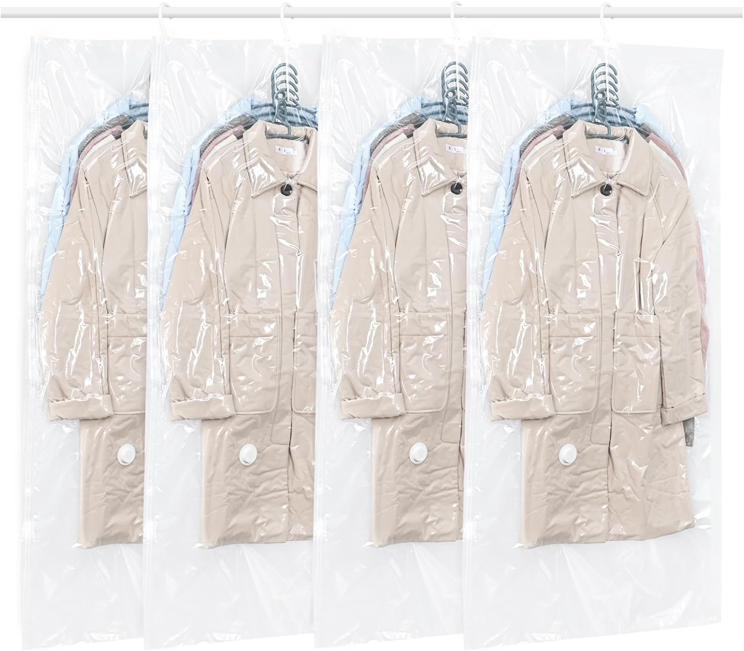 - Revolutionäres Design – Vakuum-Aufbewahrungsbeutel mit 5 Haken zum Aufhängen von bis zu 5 Trenchcoats, Daunenmänteln oder Mänteln, sodass Sie auf einen Blick sehen können, was sich darin befindet. Sparen Sie Platz in Ihrem Kleiderschrank mit