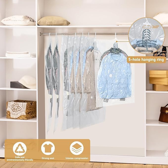 - Einfach zu bedienen: Sie können die hängende Aufbewahrungstasche direkt mit jeder elektrischen Vakuumpumpe und Staubsauger absaugen. Praktisch, schnell und leise, der um 360 Grad drehbare Haken hilft Ihnen, Ihre Kleidung schnell zu finden und zu