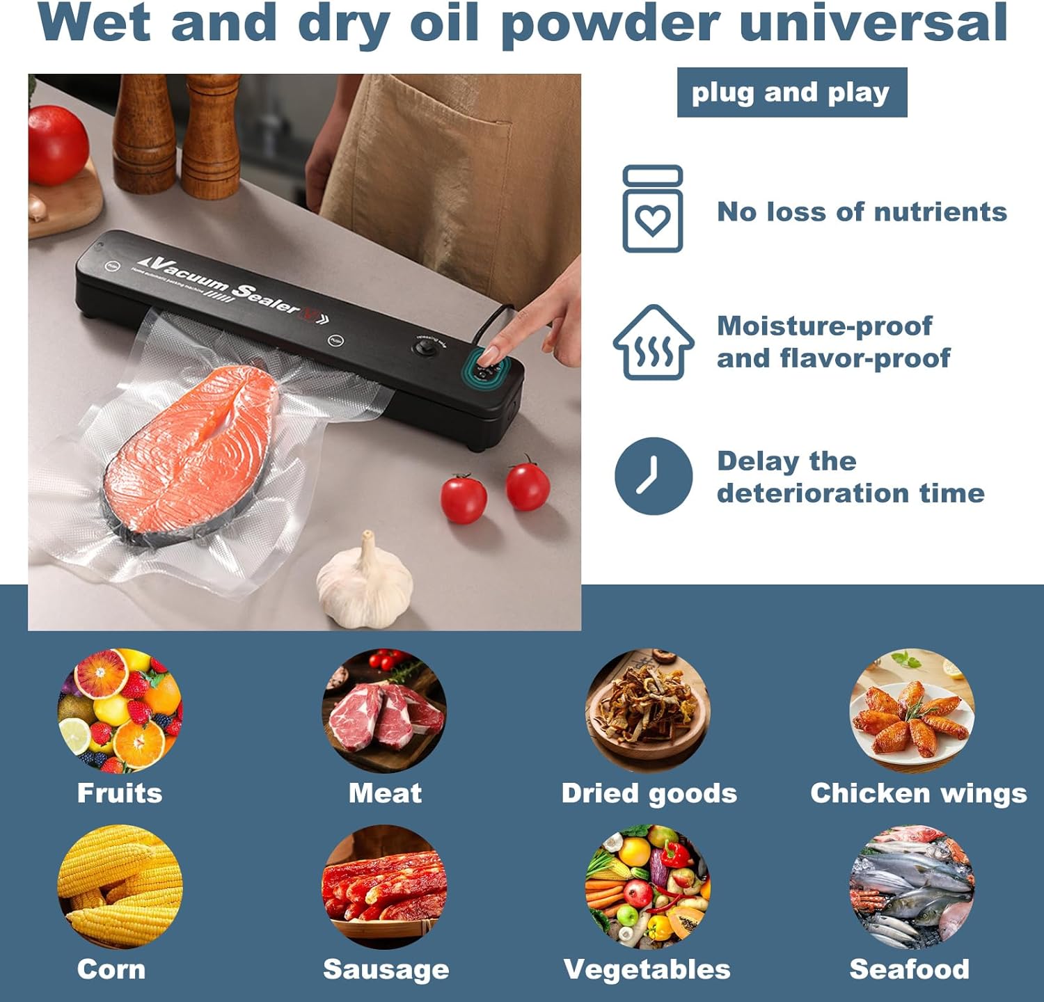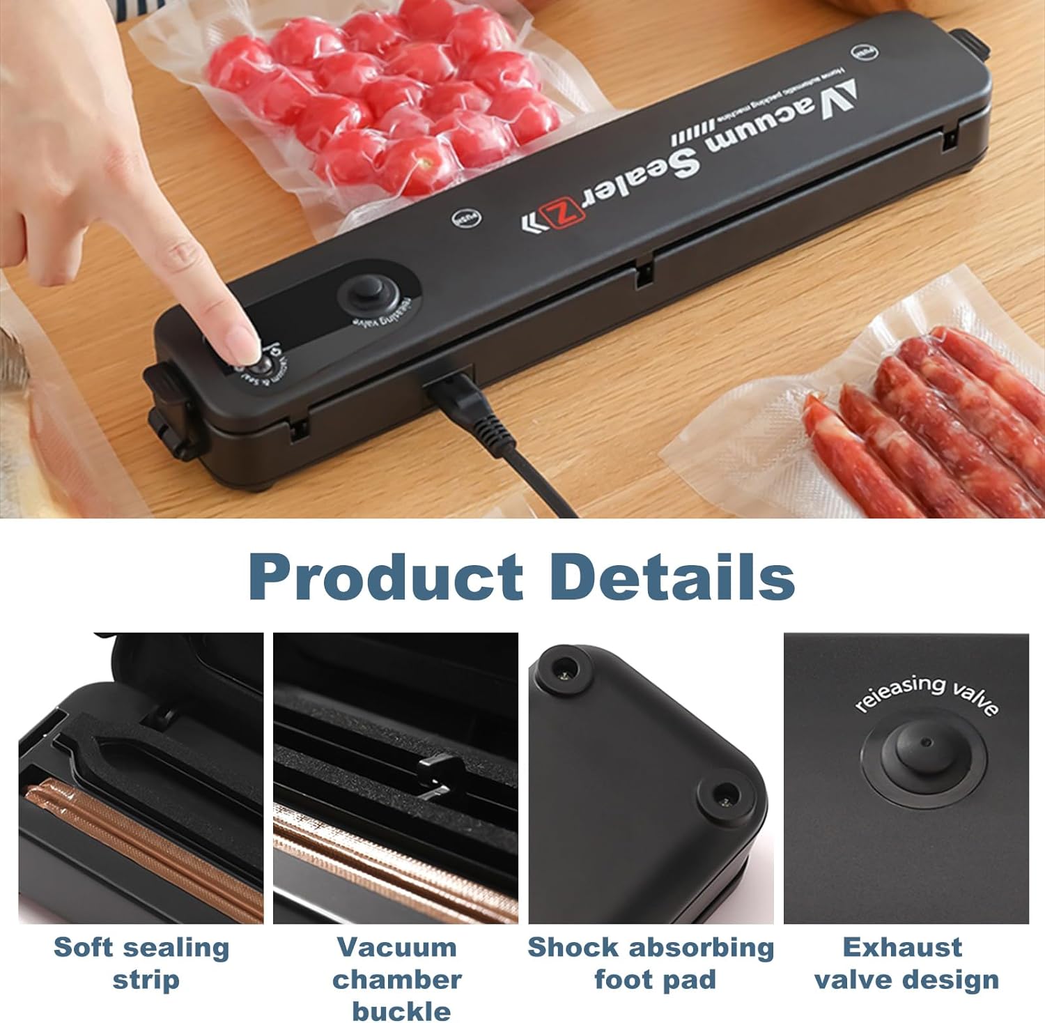 Vakuumierer, Lebensmittel bleiben vakuumiert bis zu 8x Länger Frisch, Folienschweissgerät für Trocke