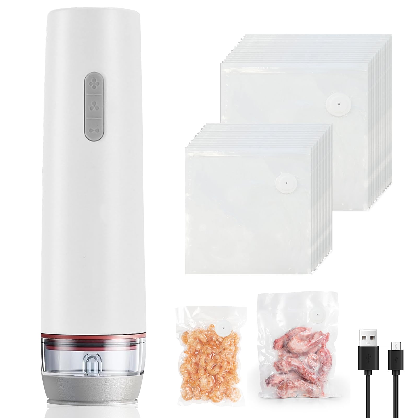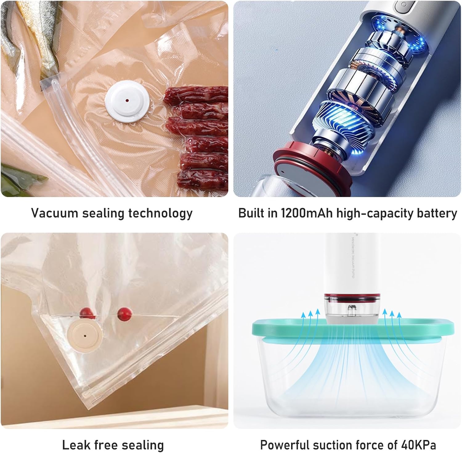- 【Kompakt und Effizient】Unser tragbares Vakuumiergerät überzeugt durch kompaktes Design und hohe Leistung. Der Vakuumierer mit integriertem hoher Kapazität Akku bietet bis zu 1000 Anwendungen pro Ladung. Der handliche Handvakuumierer erreicht mit