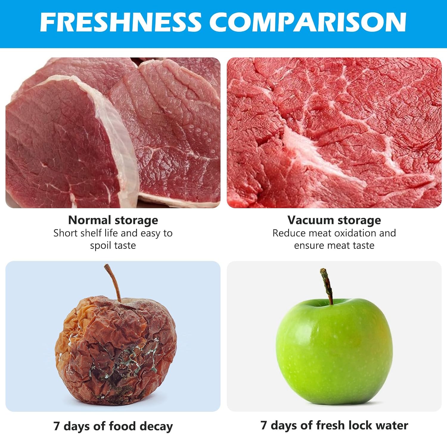 - 【Halten Lebensmittel 5x Länger Frisch】Im Vergleich zu herkömmlichen Aufbewahrungsmethoden hält unser Vakuumiergerät Lebensmittel bis zu 5x länger frisch. Der leistungsstarke Vakuumierer nutzt doppelt versiegelte Beutel, um Luft vollständig zu