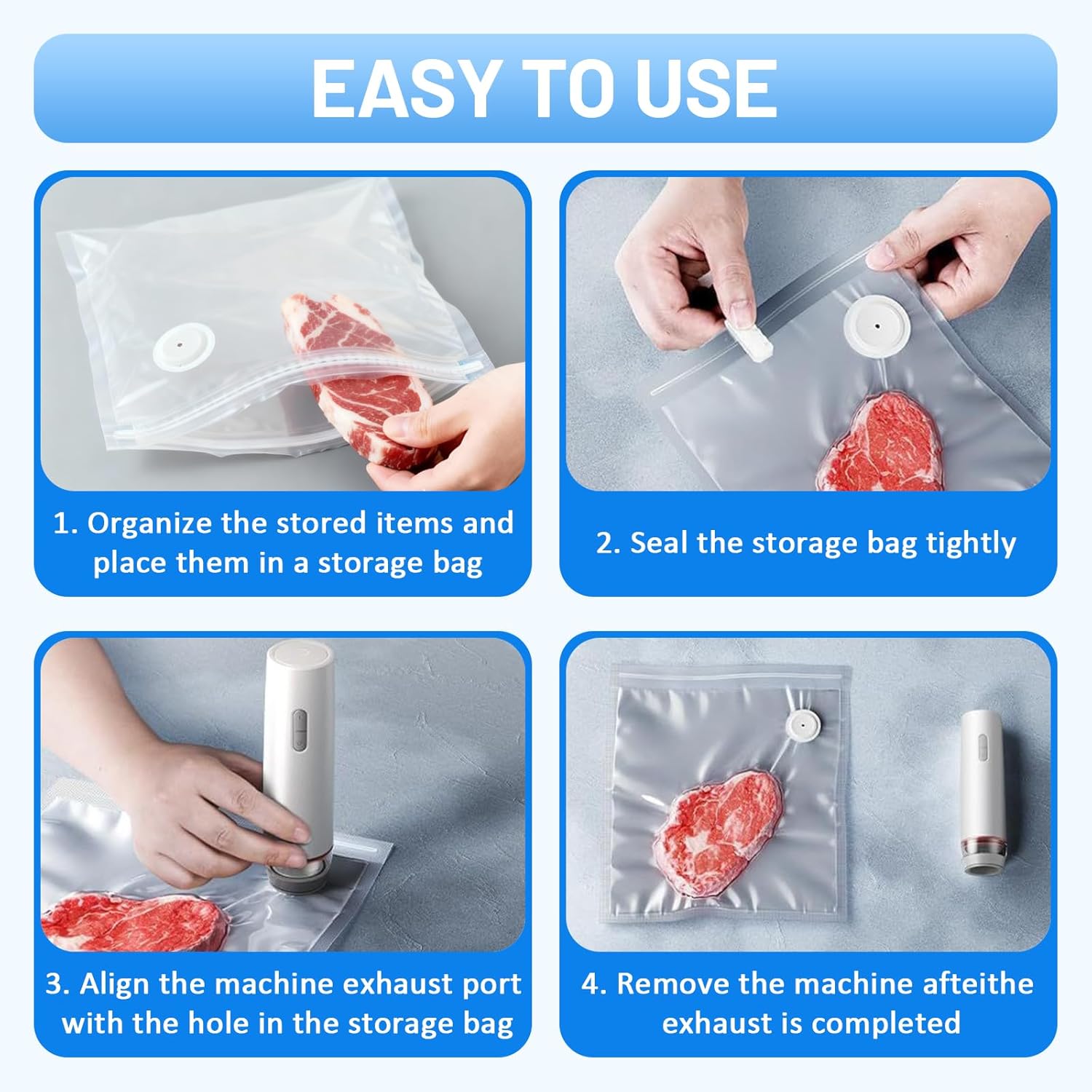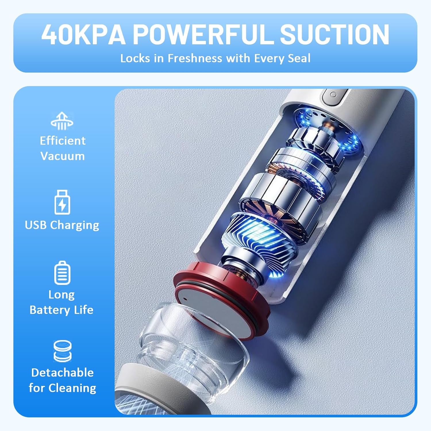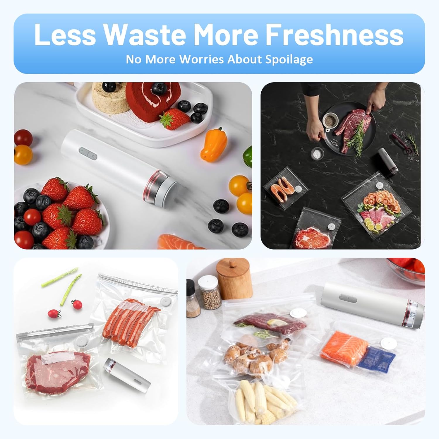 - Kompakt und Tragbar: Dieser platzsparende Vakuumierer ist ideal für kleine Küchen. Dank seiner kompakten Grösse lässt er sich leicht verstauen und ist auch perfekt für Reisen, Campingausflüge und Picknicks geeignet.