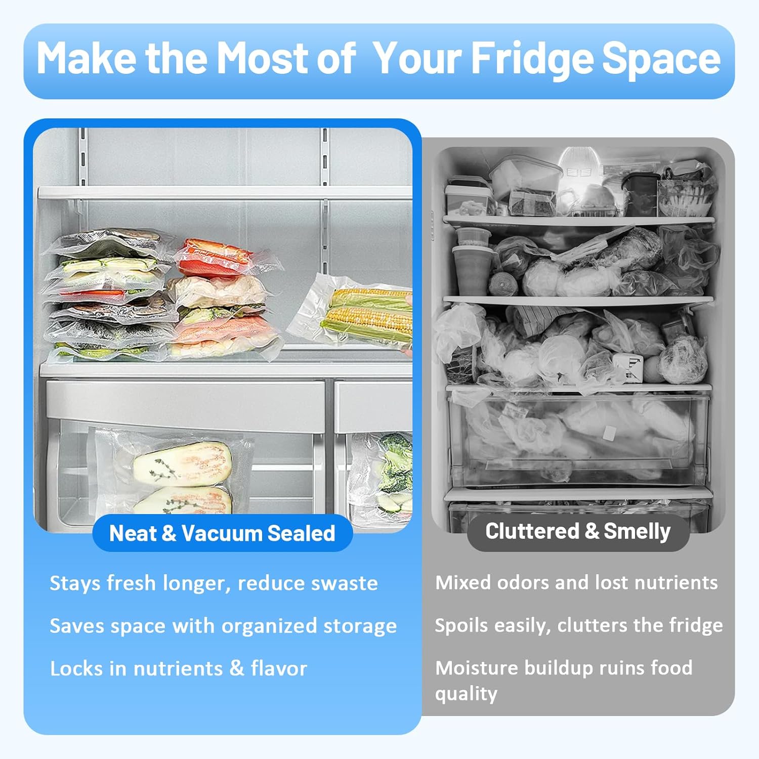 - Langanhaltende Frische: Mit dem Vakuumiergerät halten Sie Fleisch, Gemüse, Käse und Obst bis zu 5x länger frisch. Durch das luftdichte Versiegeln wird Verderb, Gefrierbrand und Abfall effektiv reduziert – ideal für eine nachhaltige Küche und