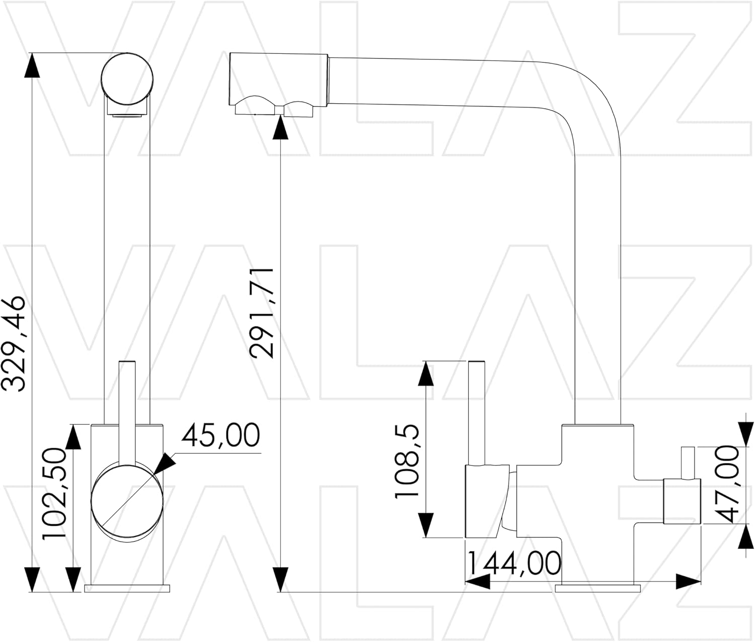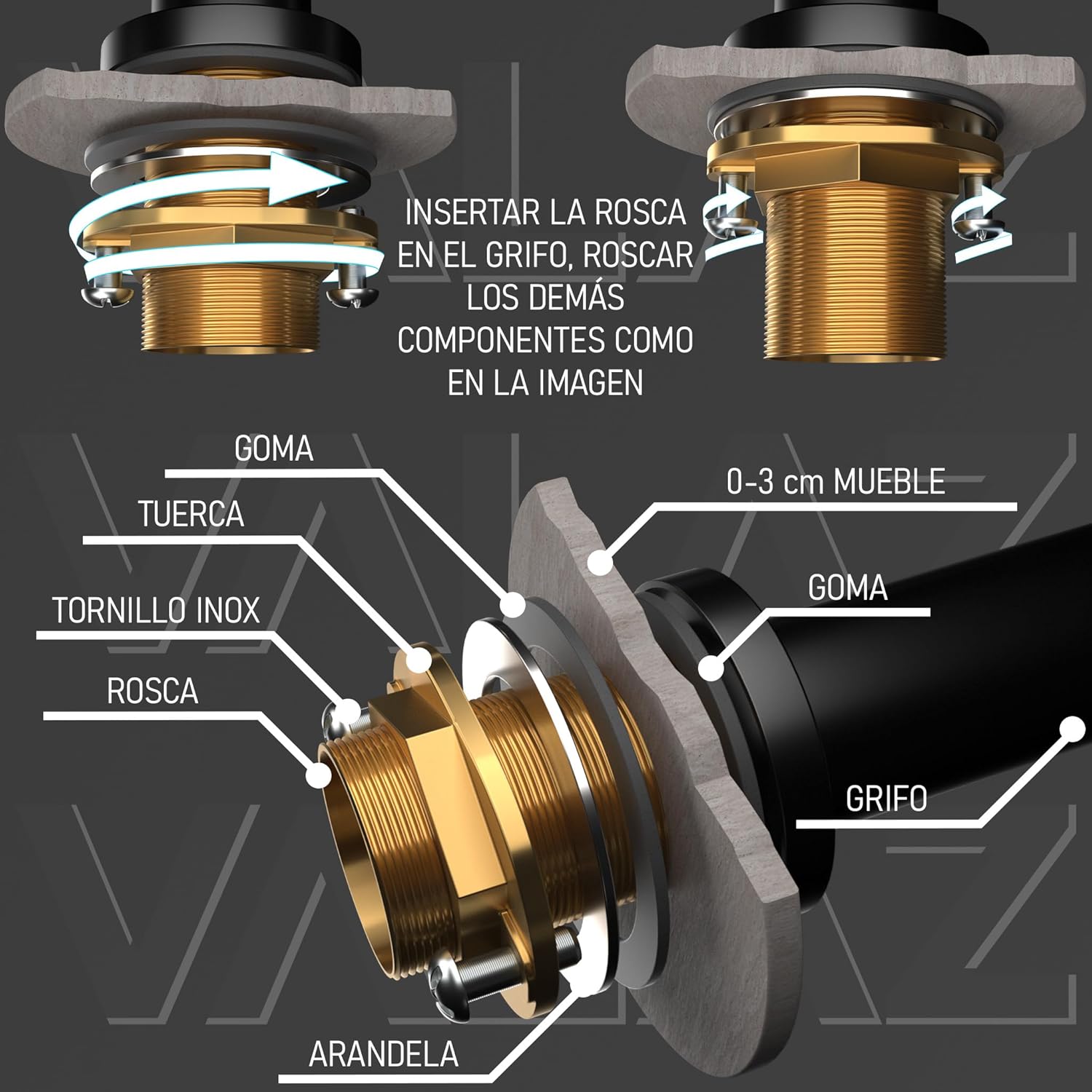 PRODUKTBESCHREIBUNGEN Küchenarmatur mit integriertem Osmoseauslass mit 3 Wege für Kaltwasser, Warmwasser und Osmose. Armaturenkörper aus Messing. Kartusche Ø 35 mm mit KTW / DVGW Anschlussschlauch 3/8" + 1/2" aus Edelstahl mit DVGW 360 drehbarer Auslauf.