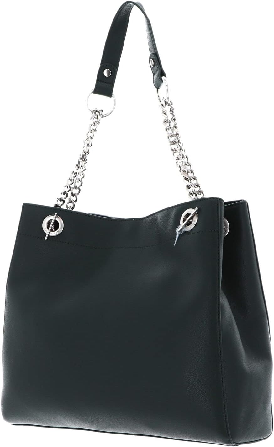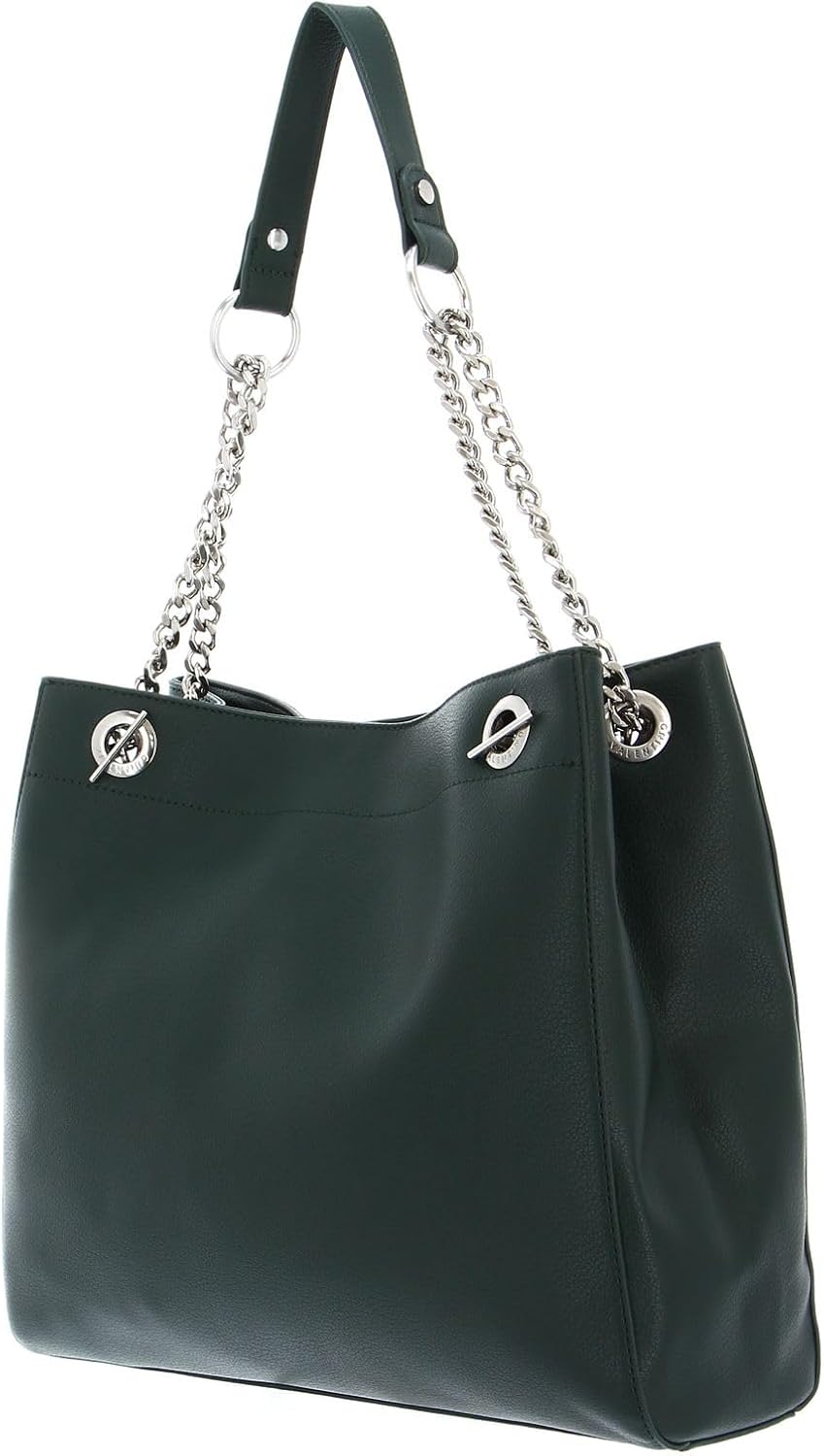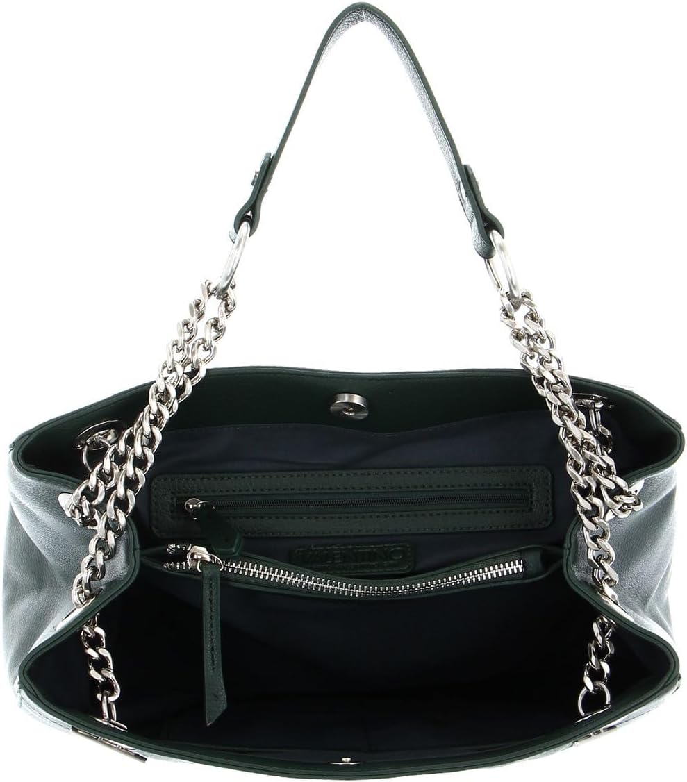 PRODUKTBESCHREIBUNGEN VALENTINO Handtasche mit genarbter Oberfläche Daten Handtasche: o Masse oben: Breite ca. 31 cm, Höhe ca. 29 cm, Tiefe ca. 12 cm o Masse unten: Breite ca. 35 cm, Höhe ca. 29 cm, Tiefe ca. 10 cm o Gewicht: ca. 1000 g o Farbe: Foresta (Grün) o 2 Henkel: ca. 60 cm o Material: Aussen 100 Prozent Polyurethan, innen 100 Prozent Polyester o Lieferumfang: VALENTINO Handtasche mit Etikett Ausstattung Handtasche: o Handtasche wird mit Zipper und Magnetverschluss geschlossen o Das Hauptfach ist durch 1 Zipperfach in 2 Fächer unterteilt o Im vorderen Hauptfach 1 Zipperfach o Im hinteren Hauptfach 1 Zipperfach o Mit verstärktem Boden ausgestattet o Ist standfest o Ist gross genug für DIN A4 o Das VALENTINO Logo ist gut sichtbar eingearbeitet VALENTINO Aspen Tote - Die schicke Handtasche Diese VALENTINO Handtasche entzückt auf Anhieb. Die feinen, glänzenden Applikationen schenken der Tasche einen eleganten Look und wirken in Kombination mit dem schlichten Design auf Anhieb hochwertig. Bequem können Sie die VALENTINO Aspen Tote an den beiden Henkeln tragen. Klingt gut? Dann greifen Sie zu und in Kürze ist dieser Alltagsheld Ihrer!