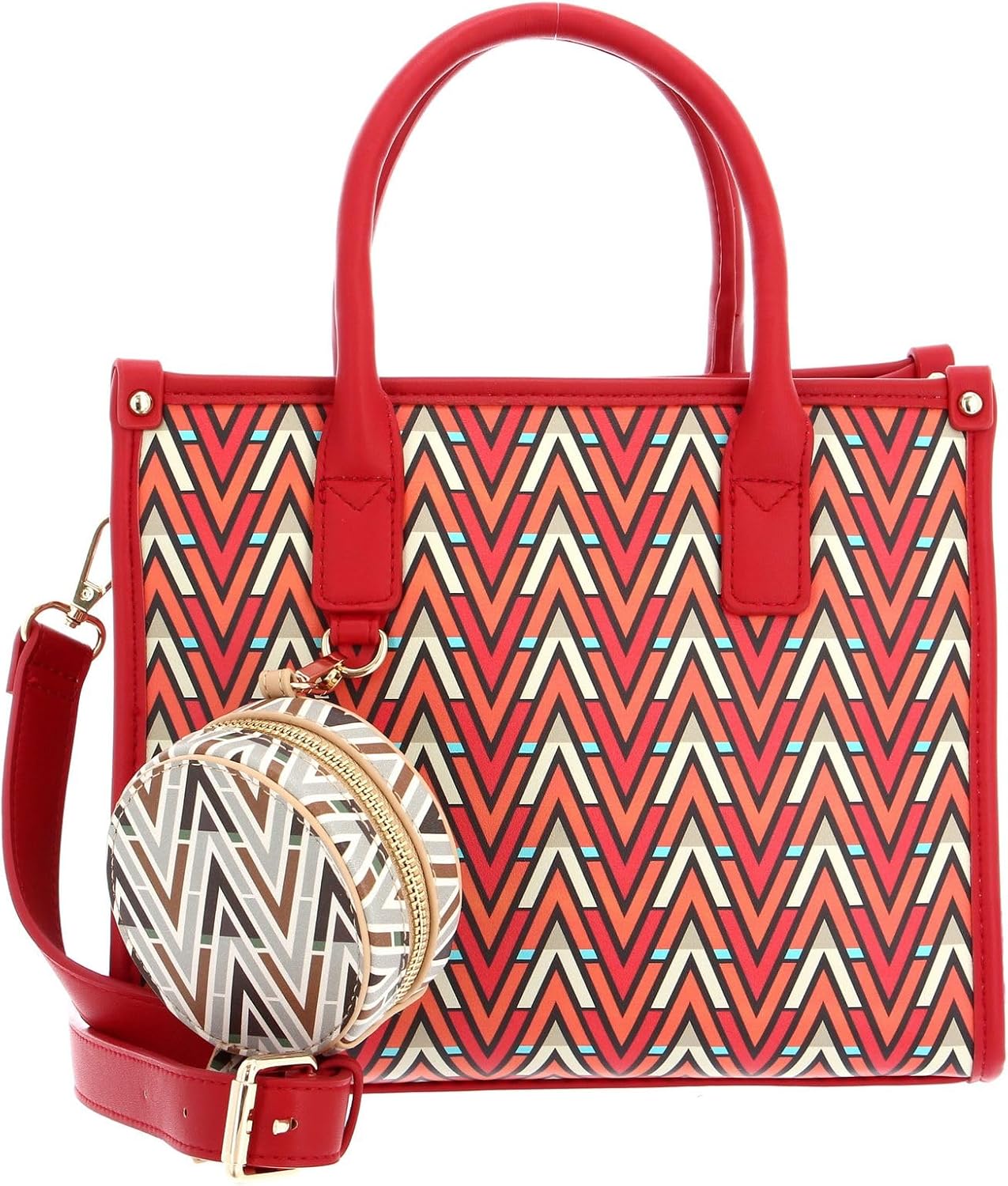PRODUKTBESCHREIBUNGEN Das italienische Label Valentino by Mario Valentino wurde 1952 in Neapel gegründet. Die vielseitige Taschen-Kollektion des italienischen Modedesigners besticht durch eine Fülle an Designs und eine farbenfrohe Auswahl für jeden Geschmack. - geräumiges Hauptfach mit Reissverschluss - ein Reissverschlussfach und zwei Steckfächer innen - abnehmbares rundes Etui mit Reissverschluss - zwei Tragehenkel - abnehmbarer, verstellbarer Schulterriemen