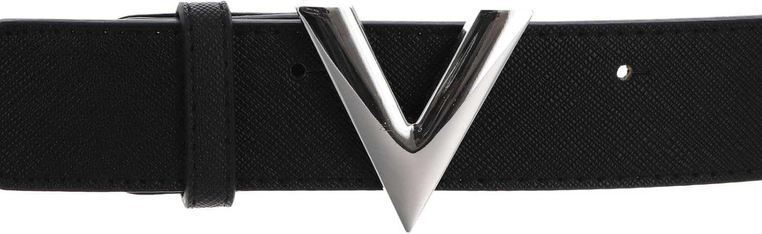 PRODUKTBESCHREIBUNGEN VALENTINO Gürtel mit einmaliger Schnalle Daten Gürtel: o Grösse, kürzbar: Weite ca. 95 cm - ca. 105 cm (W100) o Masse: Breite ca. 3,5 cm, Stärke 0,3 cm o Gewicht: ca. 100 g o Farbe: Nero / Argento (schwarz) o Material: 100% Polyurethan o Lieferumfang: VALENTINO Gürtel mit Etikett Ausstattung Gürtel: o Gürtel wird mit Koppelschliesse geschlossen o 5 gestochene Löcher o Das VALENTINO Logo ist gut sichtbar eingearbeitet VALENTINO Belt S - Der Gürtel mit Funktion zur Kürzung Der VALENTINO Belt ist ein toller, schicker Begleiter für den Alltag auf den Sie nicht verzichten wollen. Das tolle Accessoire sorgt zum einen für den richtigen Halt und zum anderen für ein tadelloses Outfit. Das Logo auf der Front von diesem Gürtel ist auffallend und sticht sofort ins Auge. Dieses Produkt macht einfach Freude! Mehr