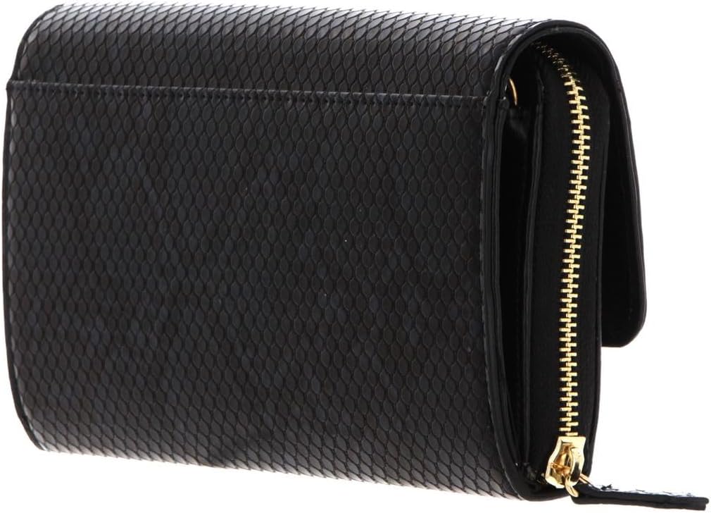 PRODUKTBESCHREIBUNGEN VALENTINO Geldbörse mit zusätzlicher Kette Daten Geldbörse: o Masse: Breite ca. 20 cm, Höhe ca. 11 cm, Tiefe ca. 4 cm o Gewicht: ca. 387 g o Farbe: Nero (Schwarz) o 1 Kette abnehmbar: ca. 124 cm o Material: Aussen 100% Polyurethan, innen 100% Polyester o Lieferumfang: VALENTINO Geldbörse mit Etikett in VALENTINO Geschenkbox, Kette Ausstattung Geldbörse: o Geldbörse wird mit Überschlagklappe, Zipper und Clipverschluss geschlossen o Geldbörse besitzt 2 Hauptfächer o Im vorderen Hauptfach 2 Geldscheinfächer, in dem sich 3 Fächer für Kreditkarten, EC Karten, Visitenkarten etc. und 1 Seitenfach befinden o Das VALENTINO Logo ist gut sichtbar eingearbeitet VALENTINO Cedar Wallet - Die besondere Geldbörse Mit dieser VALENTINO Geldbörse haben Sie einen schicken und nützlichen Alltagsbegleiter gefunden. Dank der zwei verschiedenen Hauptfächern können Sie all Ihre Finanzen sicher und geordnet verstauen. Aufgrund der zusätzlichen Kette können Sie diese Geldbörse auch zur Umhängetasche umfunktionieren. Mit diesem VALENTINO Cedar Wallet sind Sie ein echter Hingucker.