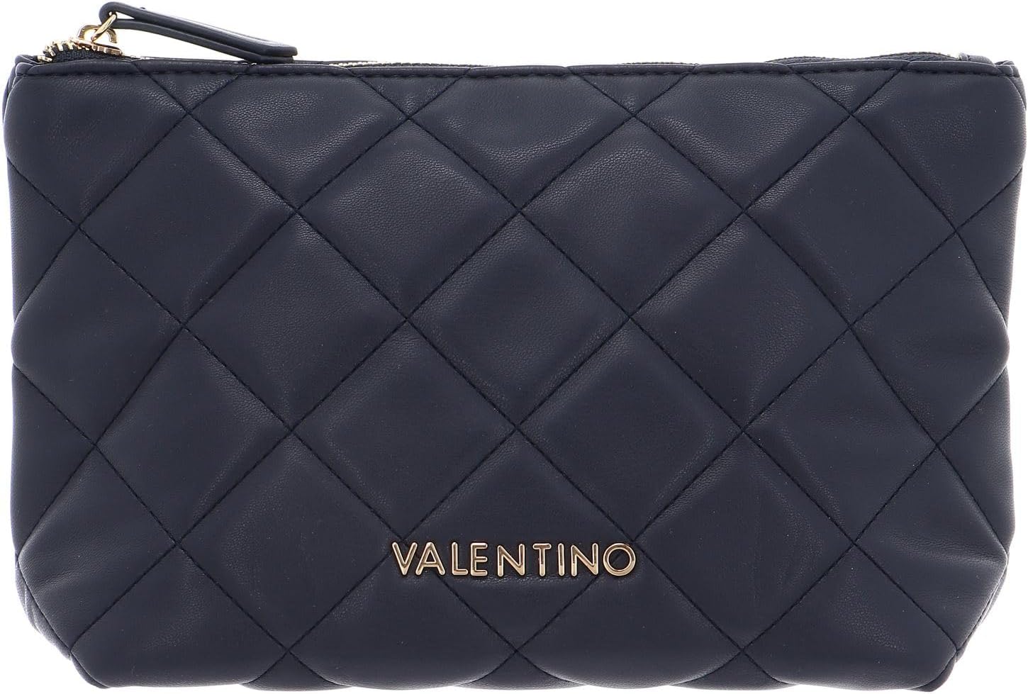 PRODUKTBESCHREIBUNGEN VALENTINO Kosmetiktasche in weich gestepptem Design Daten Kosmetiktasche: o Masse: Breite ca. 28 cm, Höhe ca. 16,5 cm, Tiefe ca. 9 cm o Gewicht: ca. 163 g o Farbe: Blu (Blau) o Material: Aussen 100% Polyurethan, innen 100% Polyester o Lieferumfang: VALENTINO Kosmetiktasche mit Etikett Ausstattung Kosmetiktasche: o Kosmetiktasche wird mit Zipper geschlossen o Im Hauptfach 1 Einschubfach und 1 Zipperfach o Mit verstärktem Boden ausgestattet o Ist standfest o Das VALENTINO Logo ist gut sichtbar eingearbeitet VALENTINO Ocarina Soft Cosmetic Case - Die moderne Kosmetiktasche Nicht nur für den Alltag haben Sie hier ein wahres Prachtexemplar gefunden. Als besonders weicher und modischer Begleiter können Sie sich bei der VALENTINO Tasche auf die Vereinigung von Style und Ausstattung freuen. Das grosse Hauptfach sowie verschiedene Nebenfächer ermöglichen bei der Kosmetiktasche viel Platz zum Organisieren aller Habseligkeiten. Das Besondere der VALENTINO Ocarina Soft Cosmetic Case ist zweifelsfrei die gesteppte Optik. Dadurch haben Sie immer einen modernen Eyecatcher bei sich.