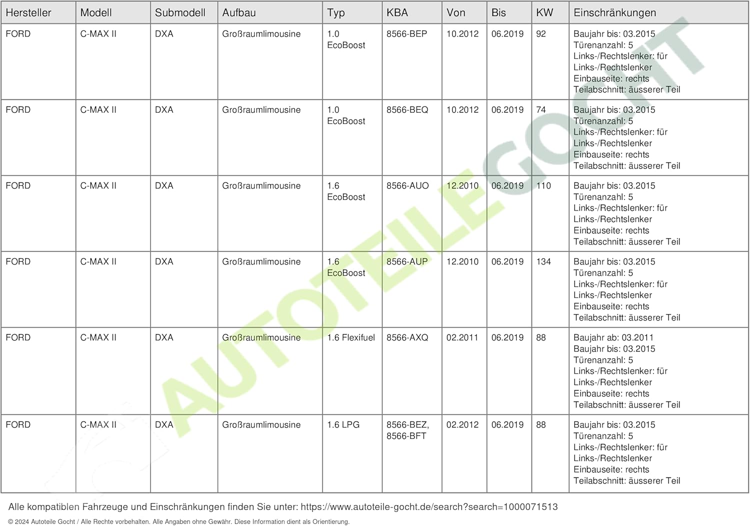 - Links-/Rechtslenker: für Links-/Rechtslenker
