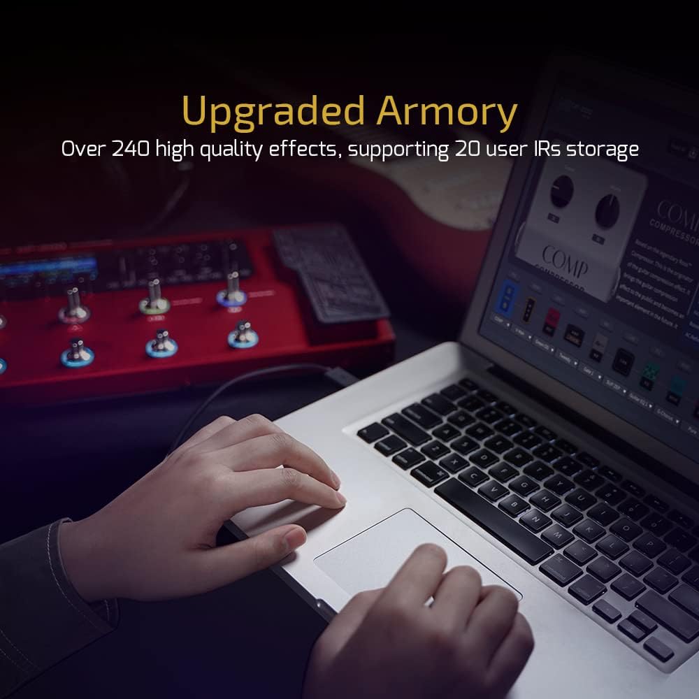 - 240+ eingebaute Gitarren-/Bass-/Akustik-Effekte mit 140 legendären Verstärker- und Kabinettsimulationen und 100 bekannten Stompbox-Effektpedalen; Unterstützung von 20 IRs von Drittanbietern; 24-bit 44.1kHz Signalverarbeitung