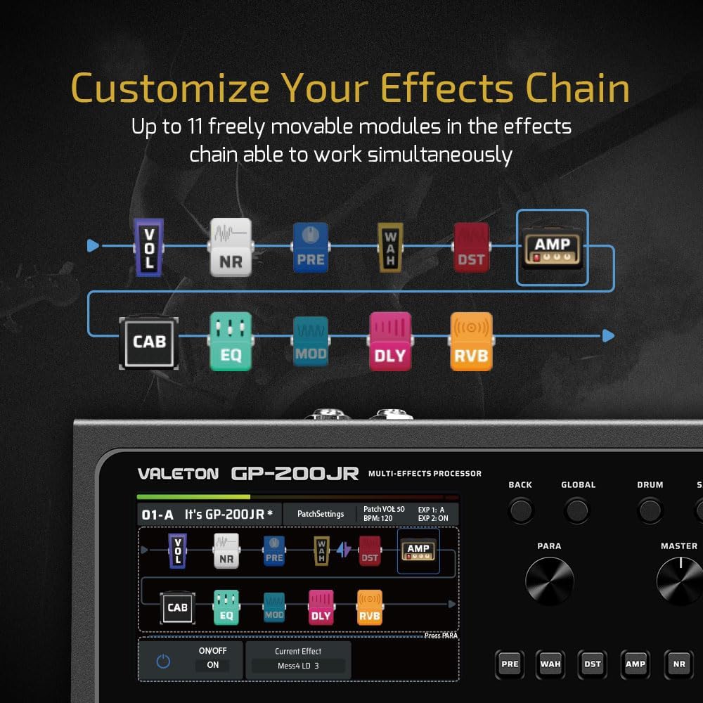 - 100 eingebaute Drum-Rhythmen und 180 Sekunden Looper, 255 Presets, ausgestattet mit der New-Gen HD Modeling Technology, einstellbare Signalkette mit maximal 11 gleichzeitigen Effektblöcken