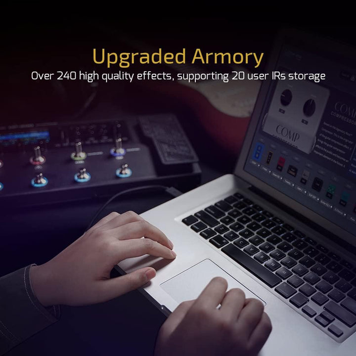 - 240+ eingebaute Gitarren-/Bass-/Akustik-Effekte mit 140 legendären Verstärker- und Kabinettsimulationen und 100 bekannten Stompbox-Effektpedalen; Unterstützung von 20 IRs von Drittanbietern; 24-bit 44.1kHz Signalverarbeitung