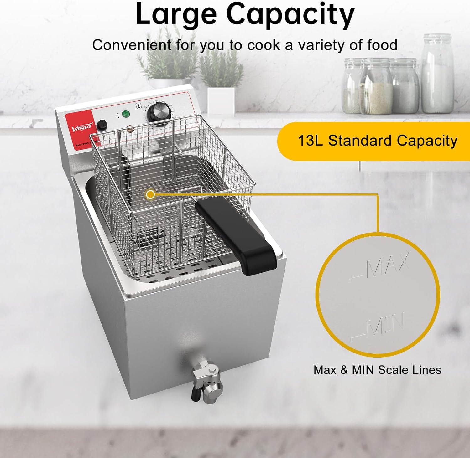 - SCHNELLES HEIZEN: Die 220-240V elektrische Fritteuse ist mit einem hochwertigen galvanisierten Metallgehäuse, einem Edelstahlkorb, einem Wasserhahn und einem verbesserten Heizrohr ausgestattet. Einstellbare Hitzekontrolle (50°C-190°C). Das Heizrohr