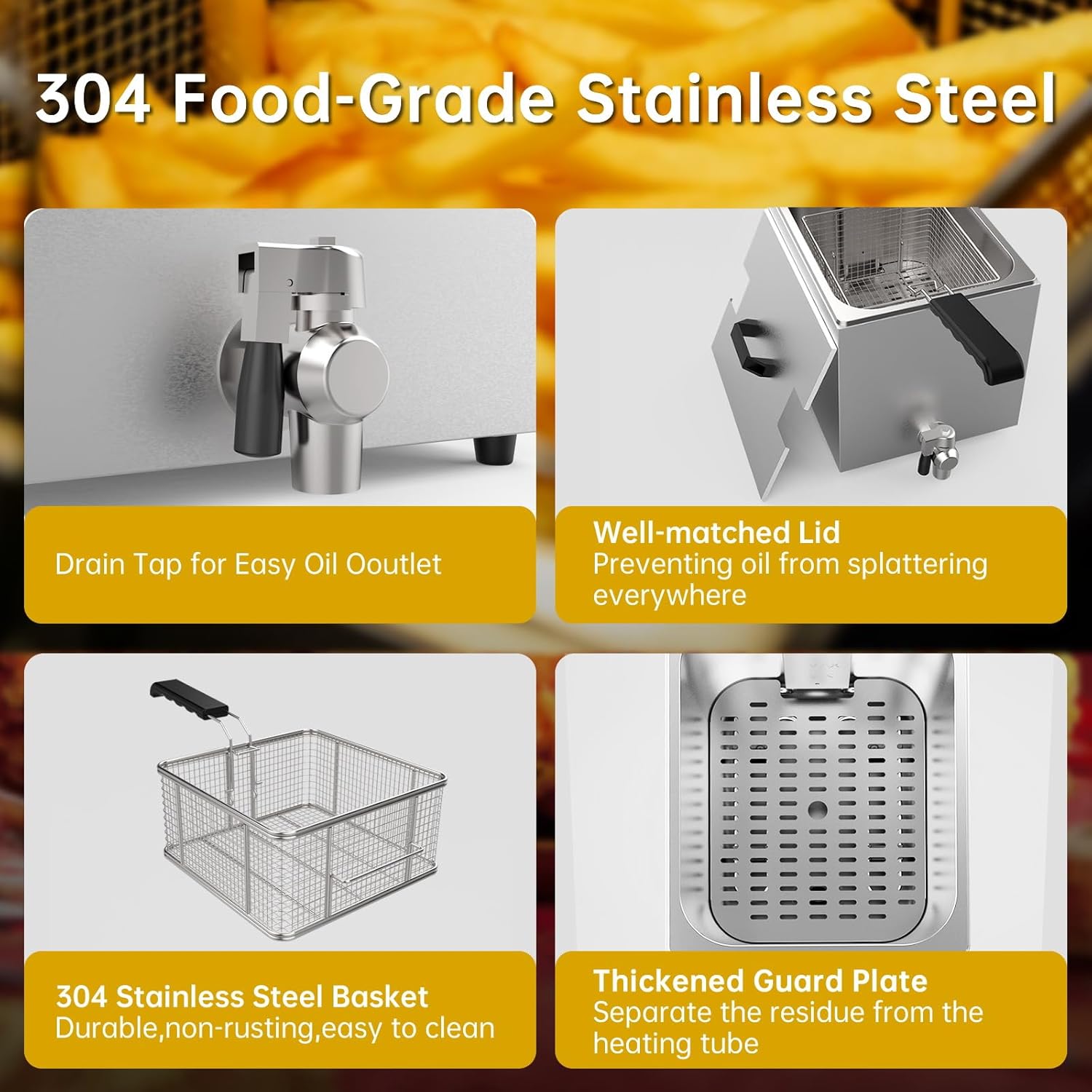 - VIELSEITIGER EINSATZBEREICH: Die Fritteuse ist sowohl für den kommerziellen als auch für den privaten Gebrauch geeignet. Sie ist ideal für anspruchsvolle Anwendungen wie Feinkostläden, kleine Sandwichshops, Imbissstände und den Heimgebrauch. Dank