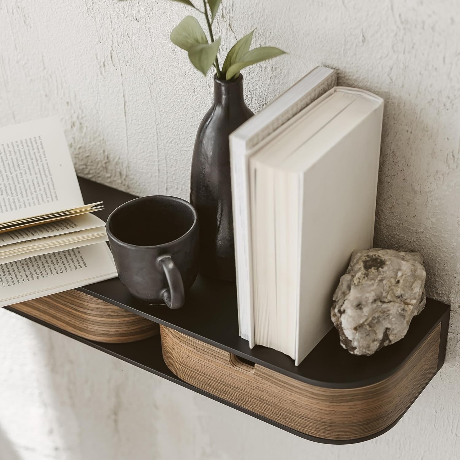 - Unser schwebendes Regal hat zwei eingebaute Schubladen mit einem Magnetteil auf der Rückseite.