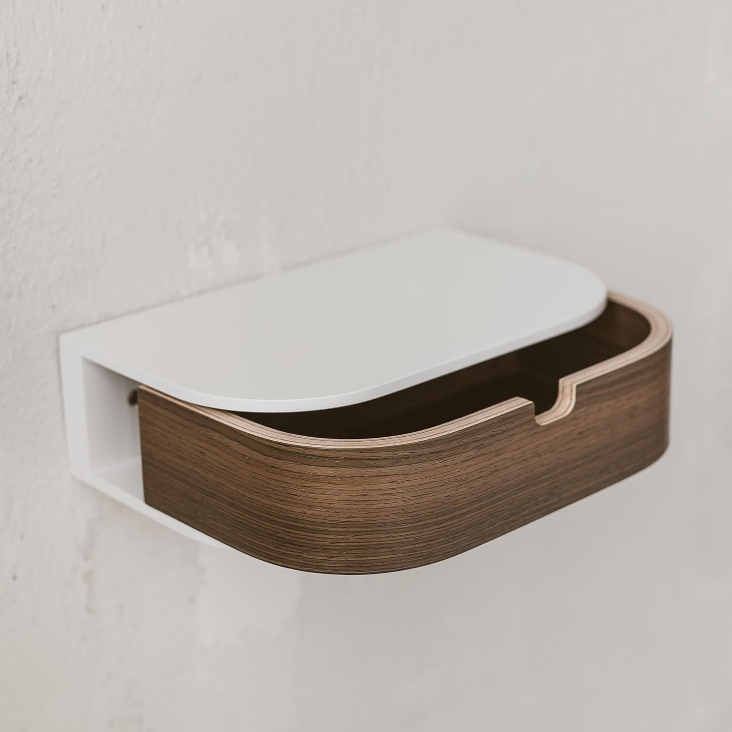 - Unser Schweberegal verfügt über zwei eingebaute Schubladen mit einem Magnetteil auf der Rückseite.