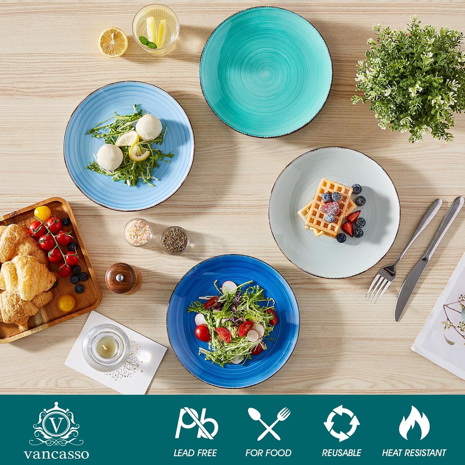 • 【Ausserordentliches Aussehen.】Aus hochwertigem und umweltfreundlichem Steingut ist das vancasso Ess Geschirrset von Hand gefertigt. Erlesene braune Augenwimper kante, modernes Strudel Design, zweiseitige hübsche glatte Glasur, einzigartige stilvolle