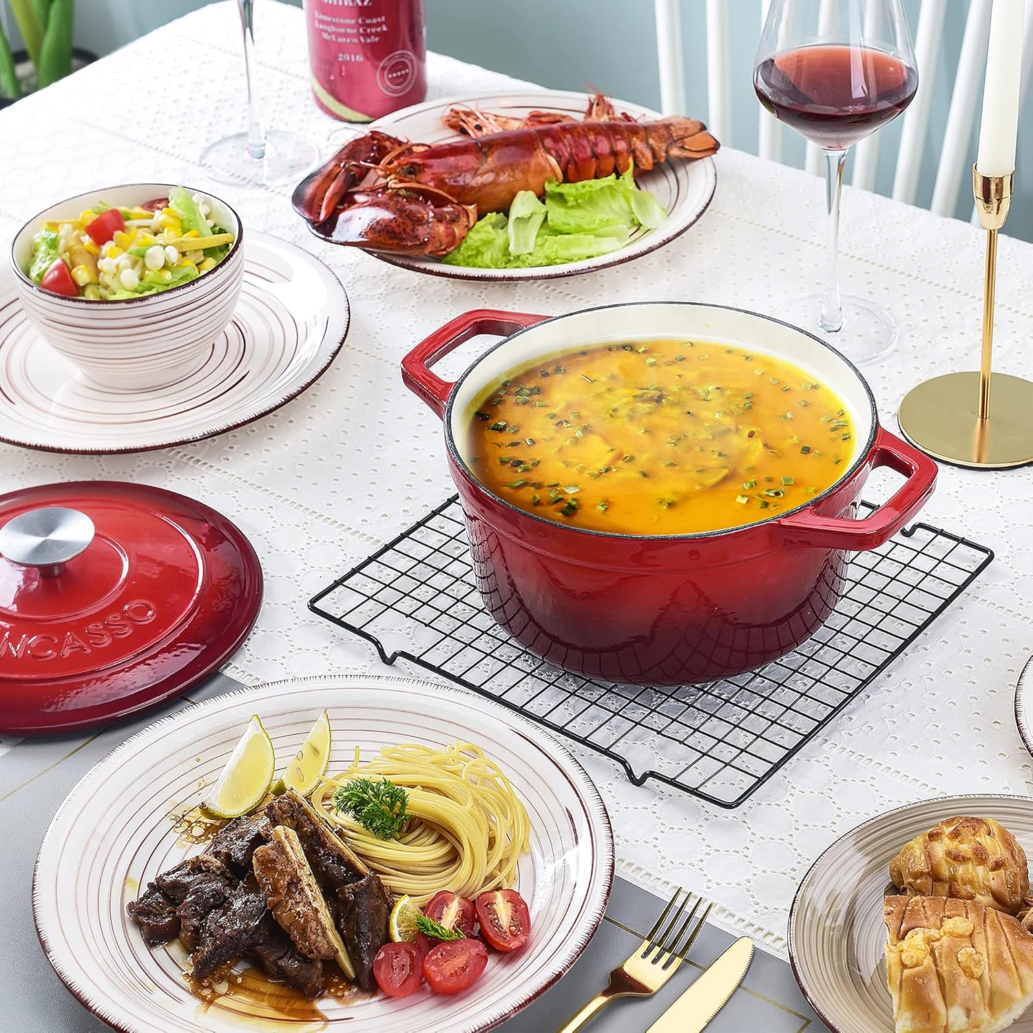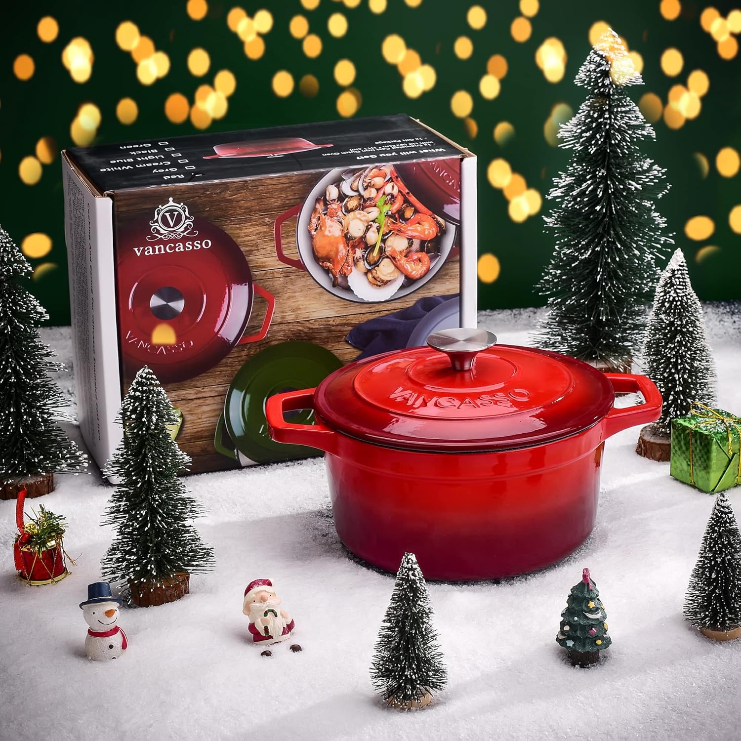 - SATTE FARBEN & DAUERHAFT - induktions kompatible vancasso-Ofen ist aus robustem Gusseisen, zuverlässig und langlebig. Mit drei Schichten bunter Emaille ist die Farbe zart und satt, was den Topfkörper vor Abnutzung und Rost schützt. Die Innenschicht