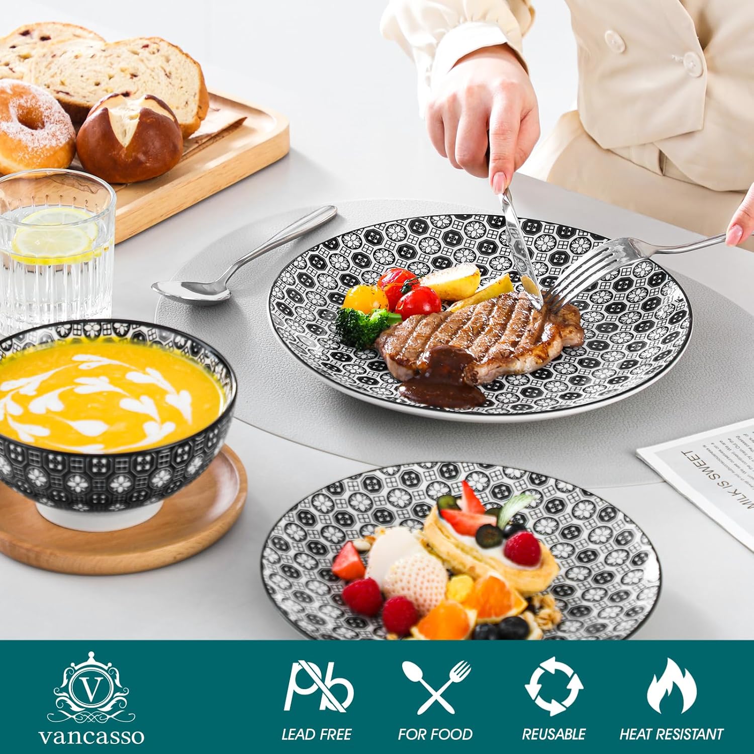 Variante: Schwarz + Creme 32-teilig Geschirrset