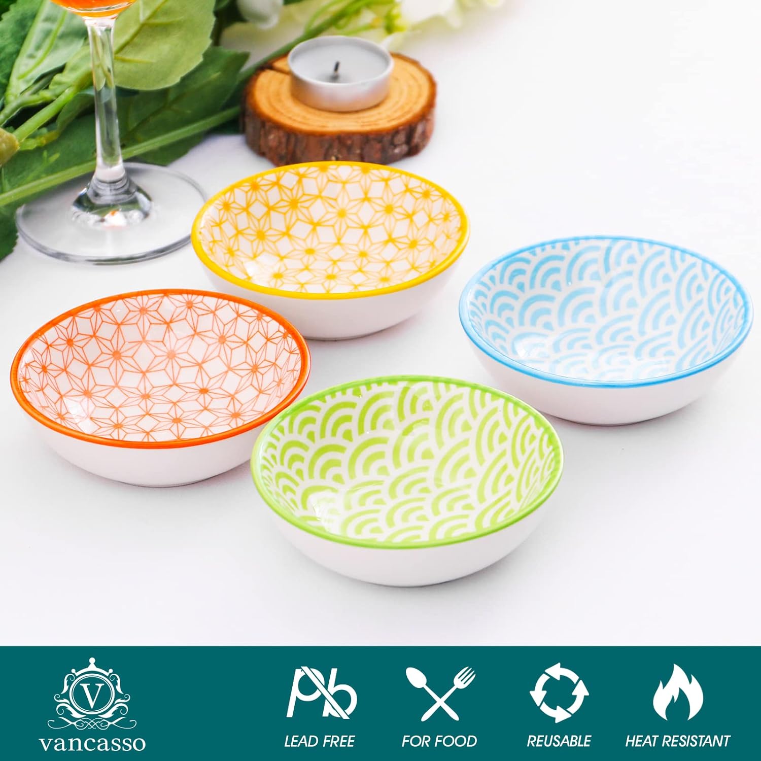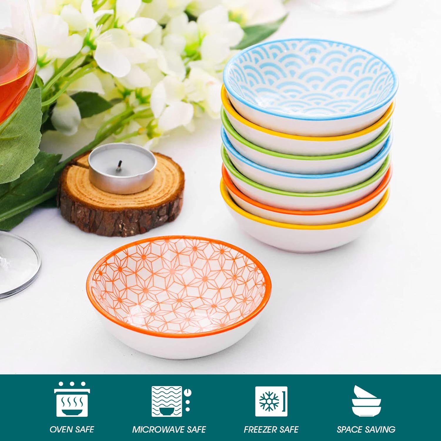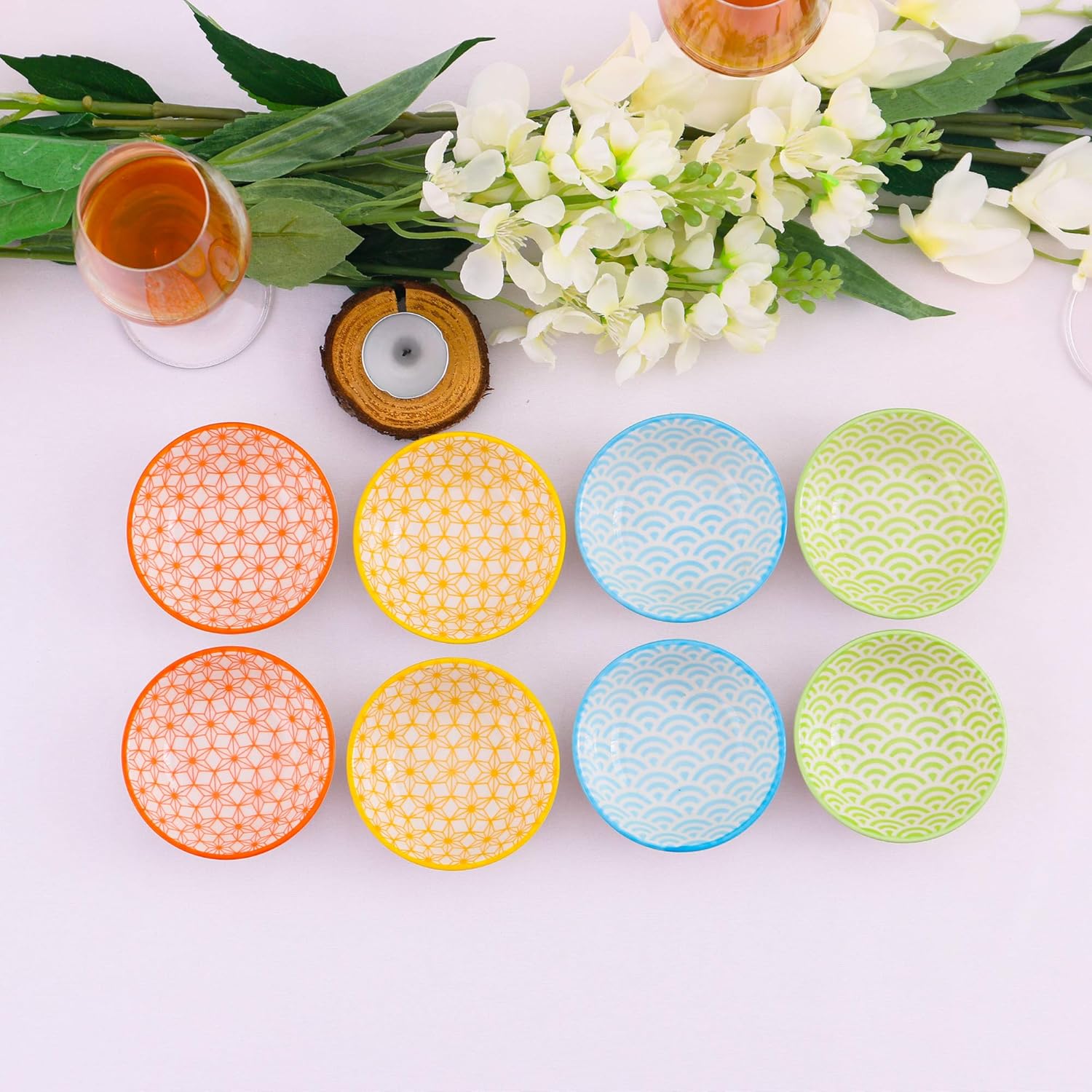 - 【Komplette Kollektionen.】8-teiliges NATSUKI buntes Tafelservice Set bestehend aus 8 Schälchen, Ø 8,8 x H 2,8 cm. Mini Schüssel ist perfekt zum Servieren von Snack und Saucen. Als auch Snackschalen & Dipschalen, Süssigkeiten schale, dip