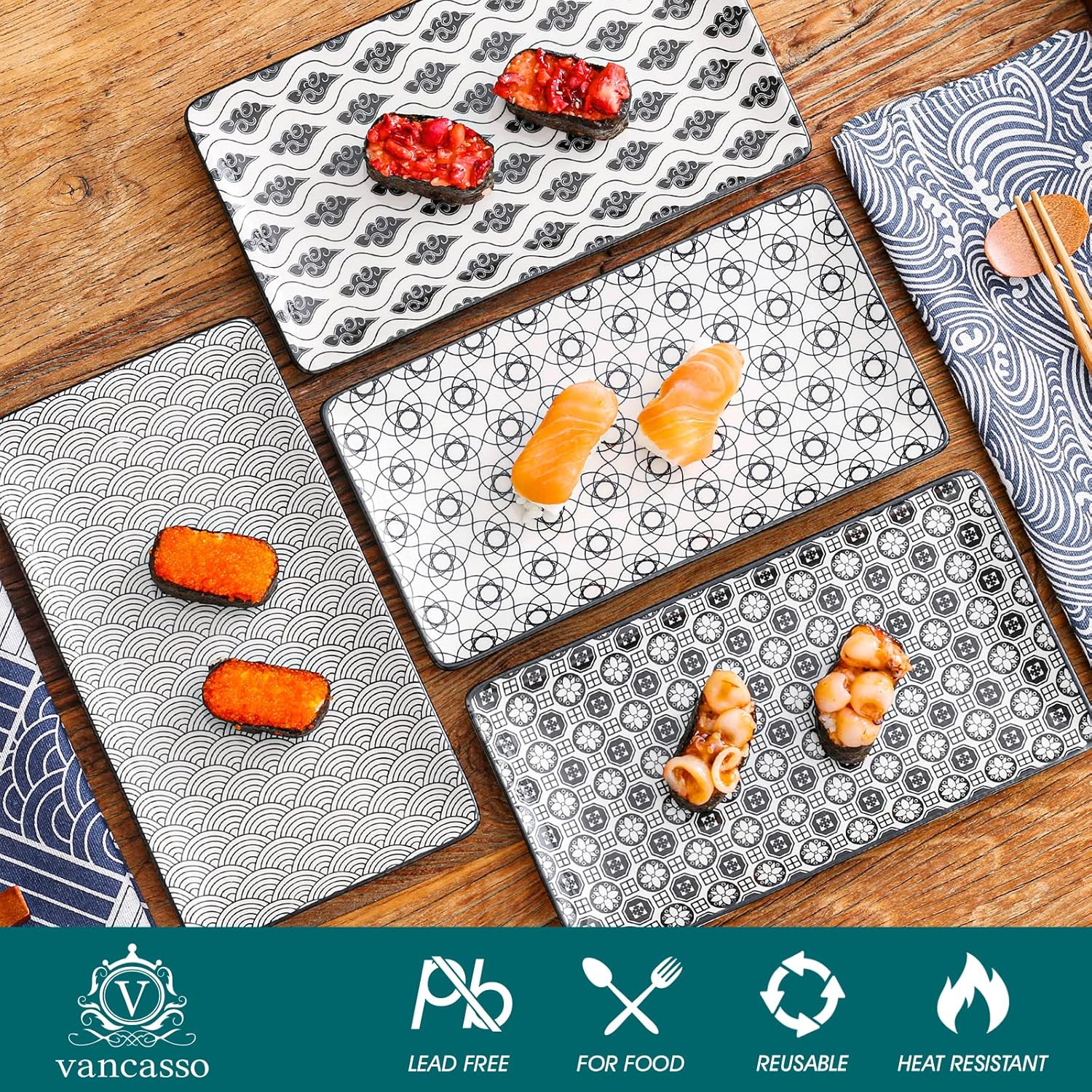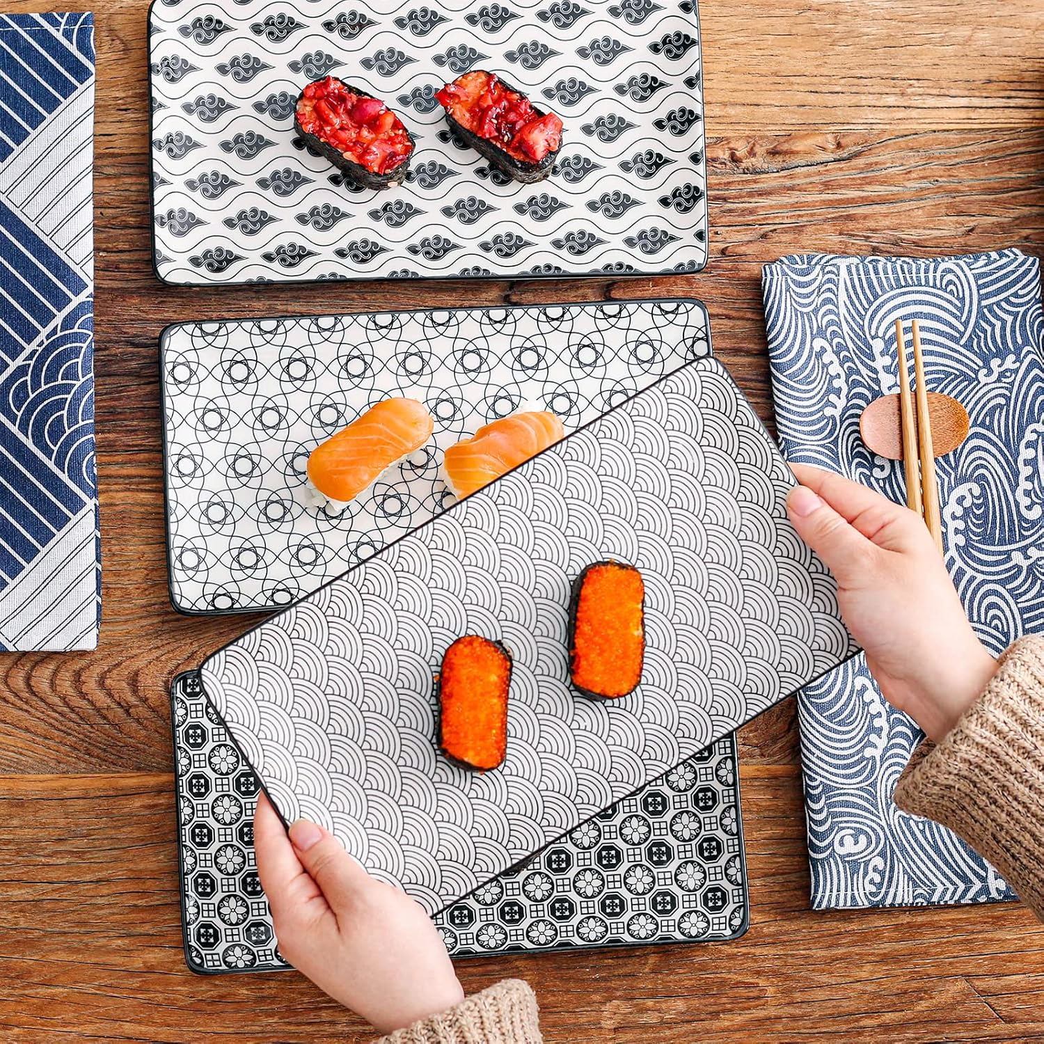 - Wunderschönes und komfortables Design ✅ In 4 verschiedenen Mustern des japanischen Stils perfekt für Präsentationsteller, Sushi-Teller, Obst, Tapas, Dessert, Torte; spülmaschinenfest, mikrowellen- und kühlschrankgeeignet