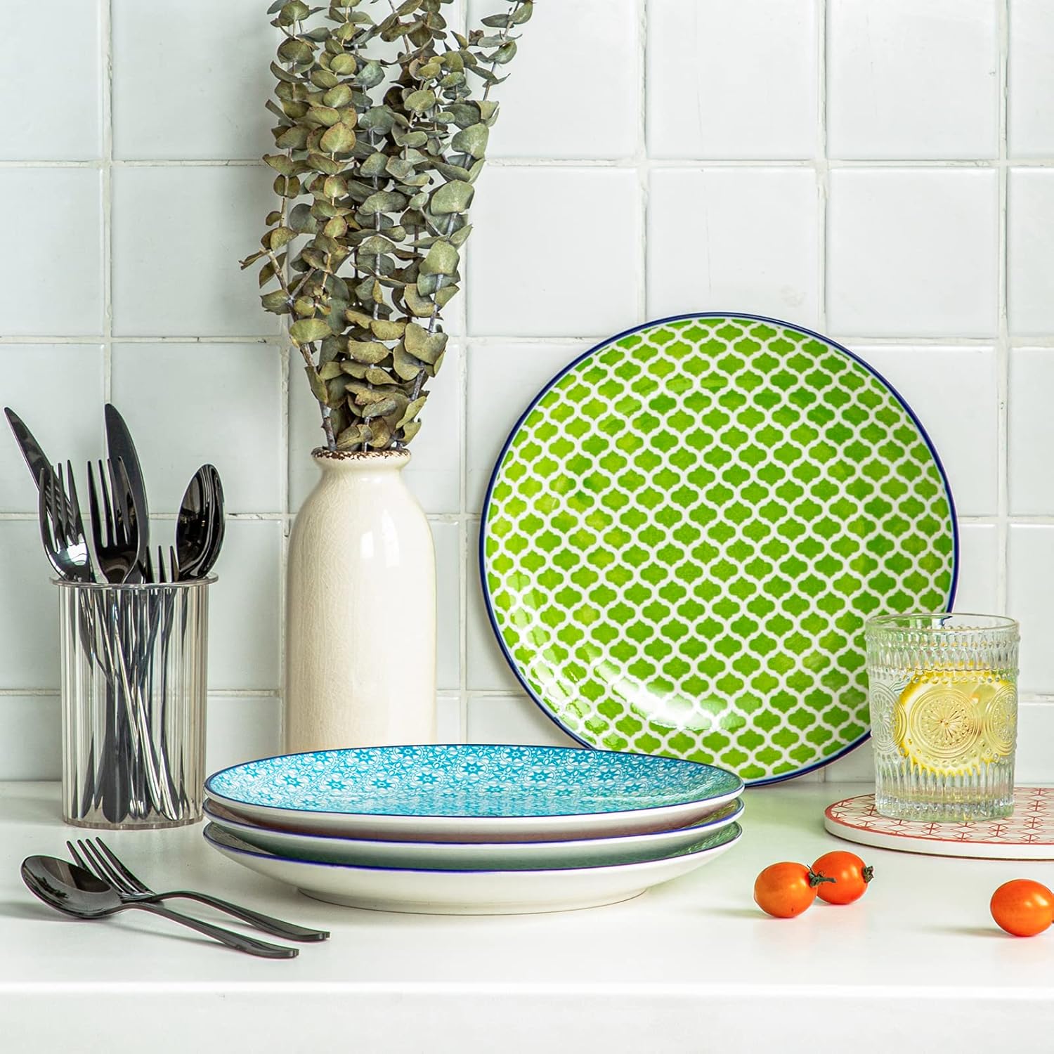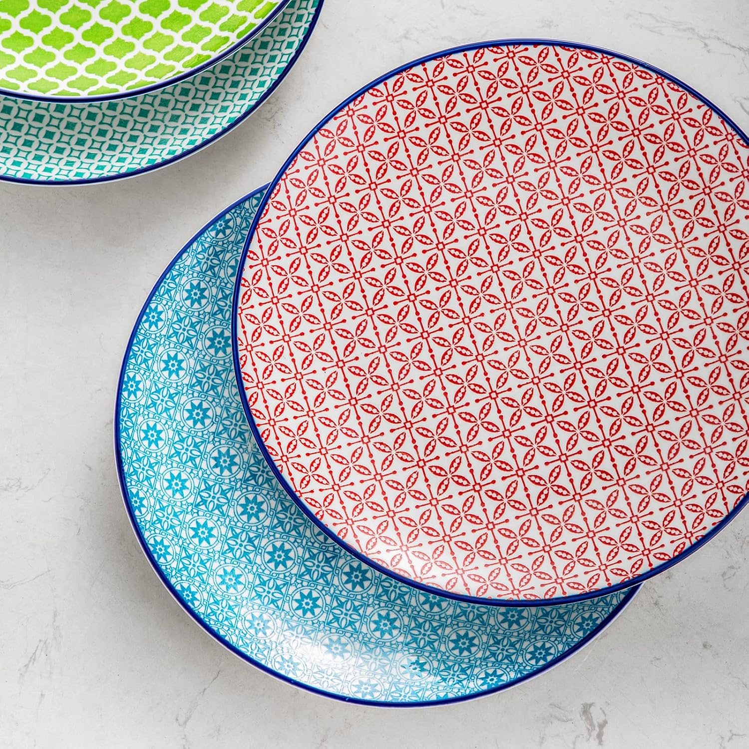 - 【Komplette Kollektionen.】4 teilig Flachteller im ungewöhnlichen Design, perfekt für den gedeckten Tisch, Grösse: 26 x 26 x 2,8 cm. Jedes macaron Kombiservice enthält vier verschiedene Farben und Muster. Super sicher und fest verpackt.