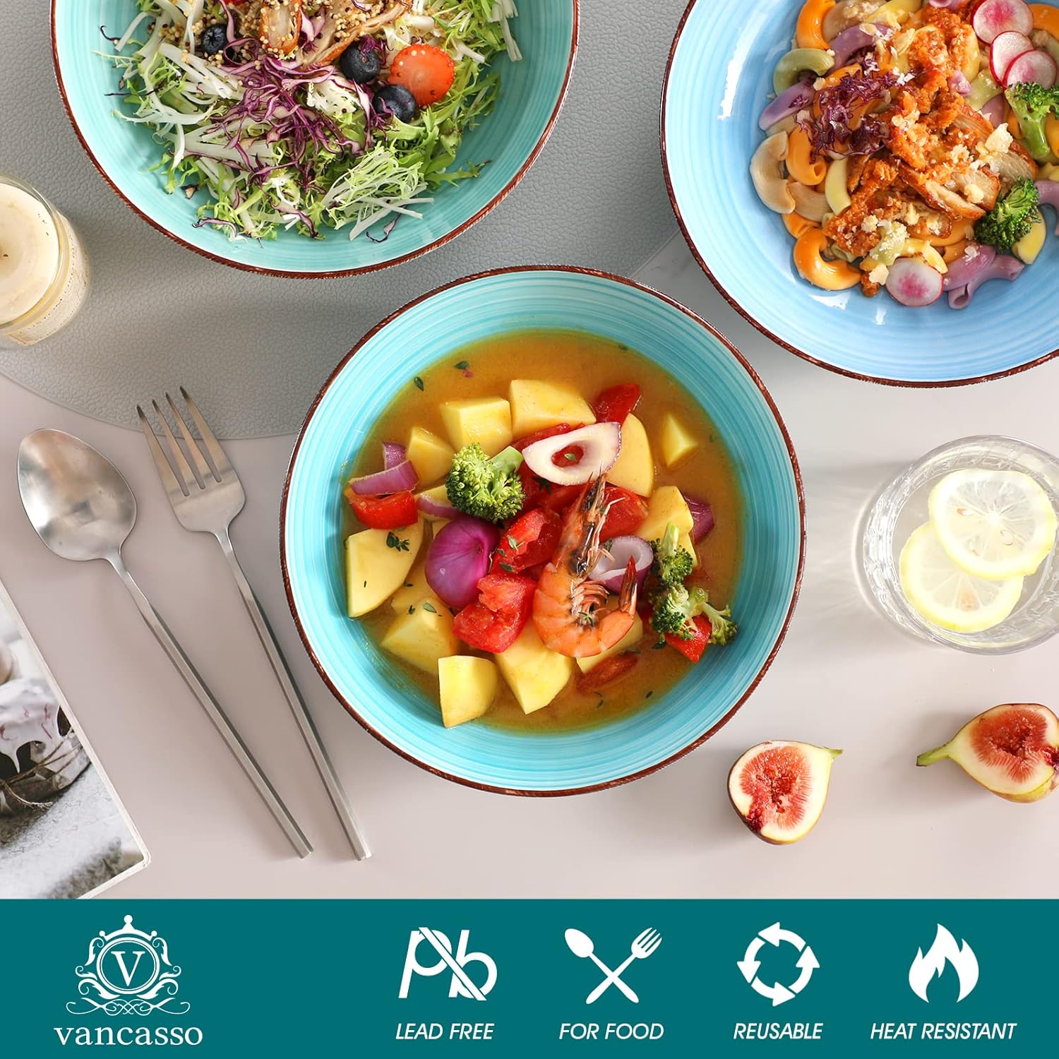 vancasso Suppenschalen Steingut, Bonita Suppenteller 6er Set, Pastateller, Spaghetti Tiefteller, Nud