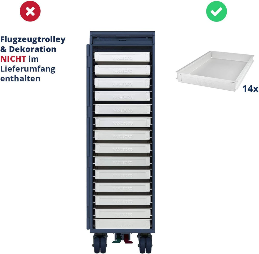 - Lieferumfang: 14x Flugzeugtrolley Einschub Aluminium Flach