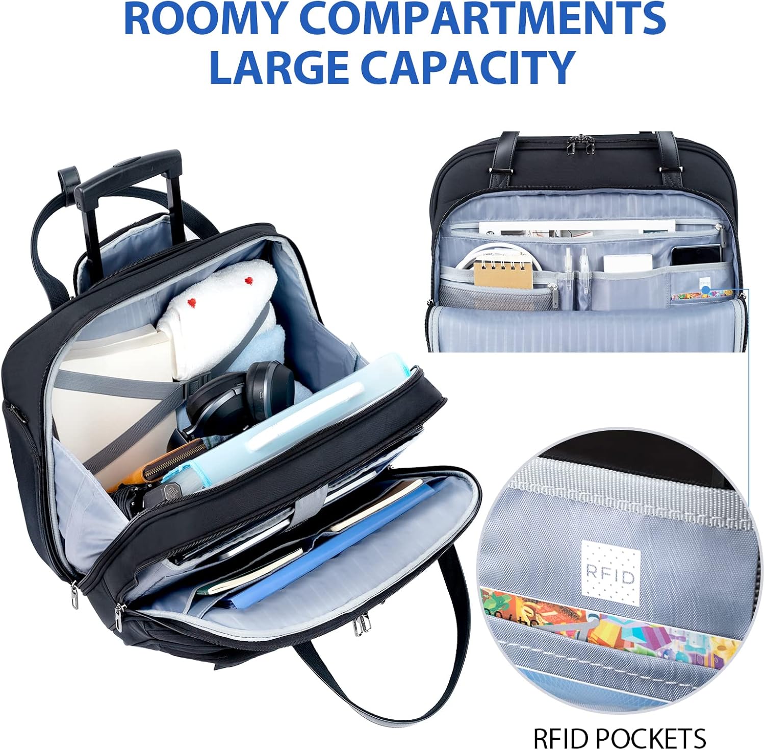 - MULTI-FUNCTIONAL COMPARTMENT: VANKEAN rolling laptop briefcase has 2 main roomy compartments that provide separate space for your 15.6” Laptop and all your items. The padded laptop compartment offers perfect protection for your laptop. The front pocket