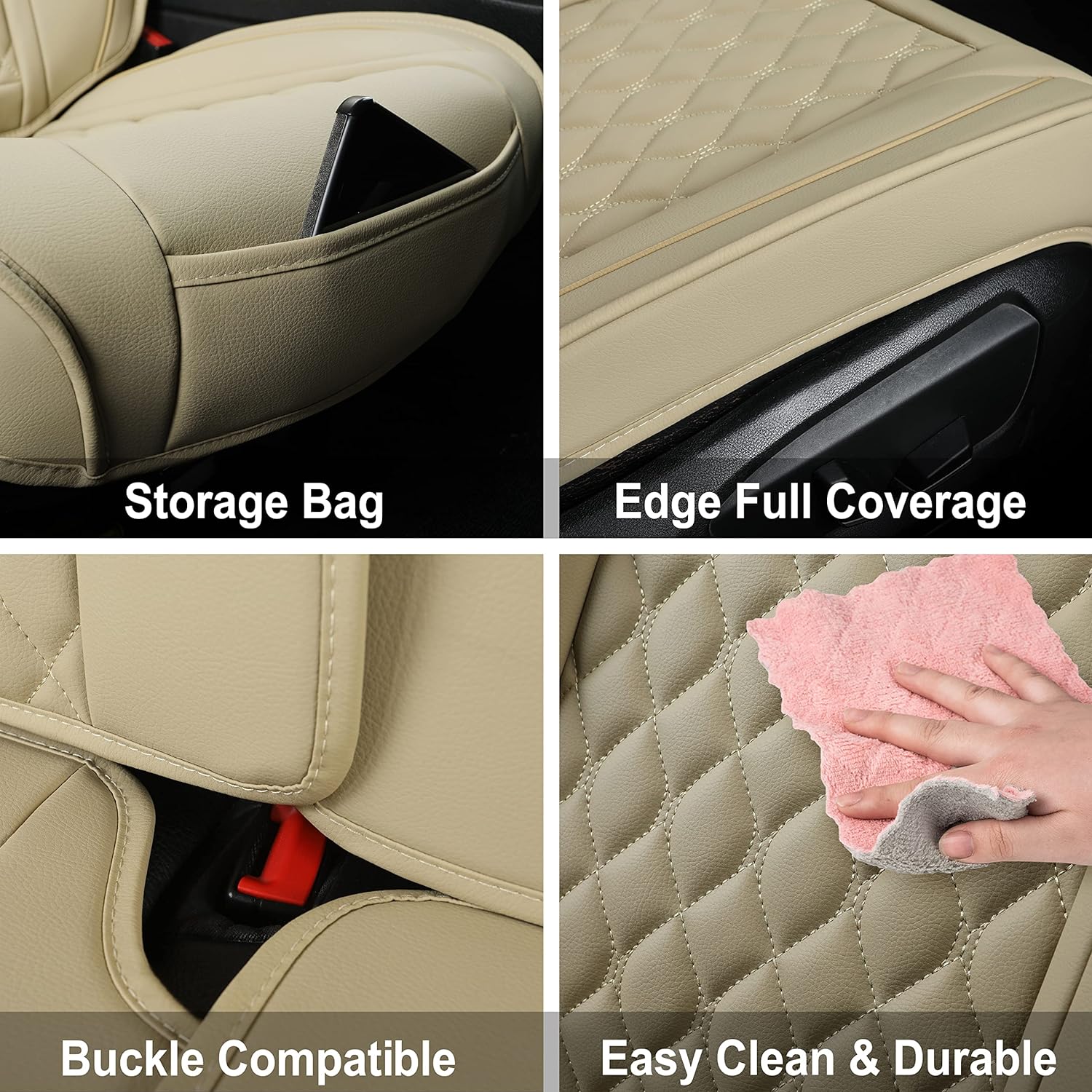 • Material: Dieser Autositzbezug ist aus hochwertigem Kunstleder, das sehr weich, nicht gesundheitsschädlich, strapazierfähig, wasserabweisend, kratzfest und leicht zu reinigen ist. Die innere Schicht ist aus dickem Schaumstoff mit hoher