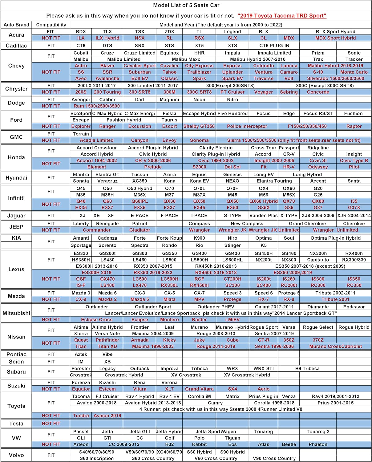 • Universelle Auto-Schonbezüge: Diese Sitzbezüge sind geeignet für verschiedene 5-Personen-Fahrzeuge, Limousinen, SUV, Hybridfahrzeuge, Schrägheck-Pkw. Nicht geeignet für Pickup in voller Grösse, wie Ford F-Serie, Dodge Ram 1500/2500/3500, Toyota