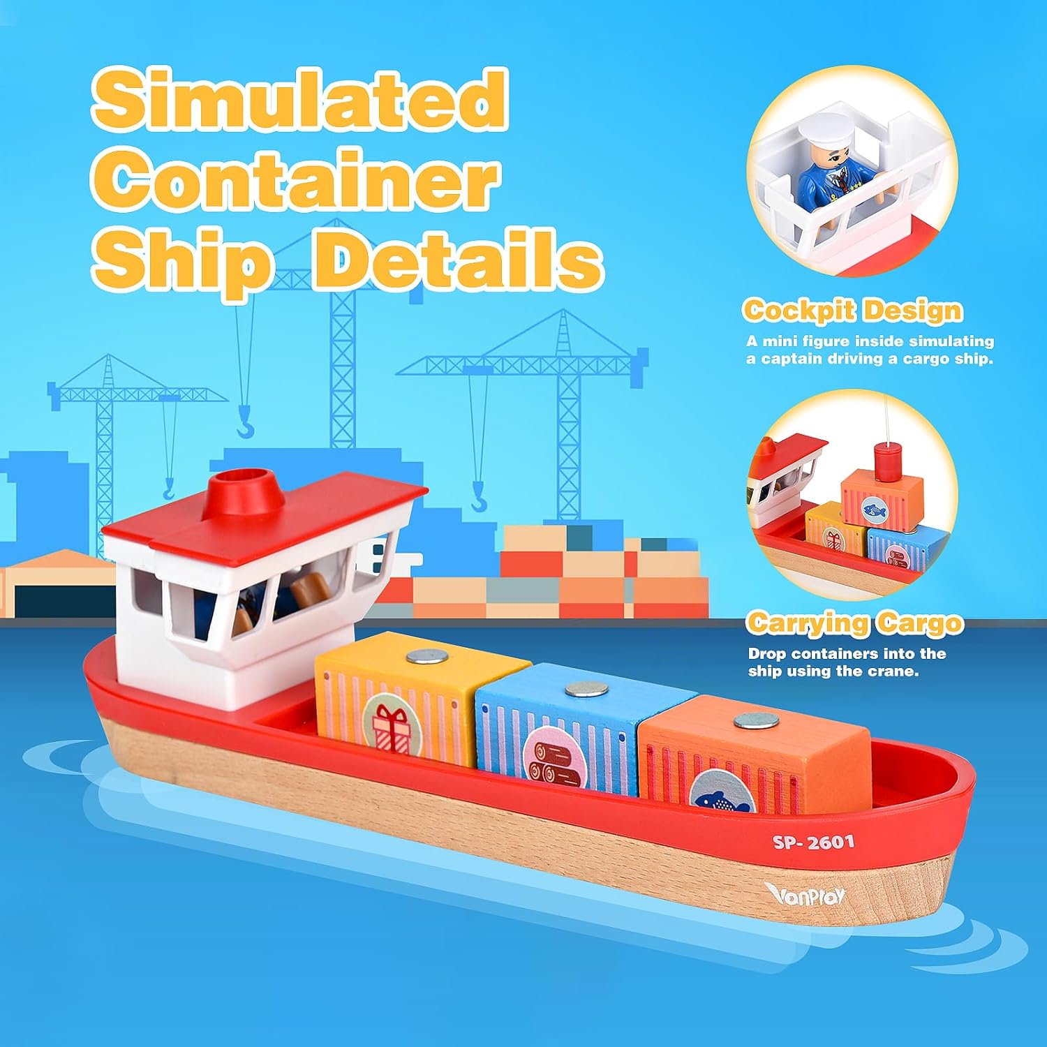 - 【Multifunktionale Hafentransportszene】Dieses Holzspielzeug-Set stellt eine realistische Hafenumgebung dar – mit Kran, schiff spielzeug, Containern, Gabelstaplern und Lastwagen. Die vielfältigen Elemente fördern das Lernen über Logistik und regen