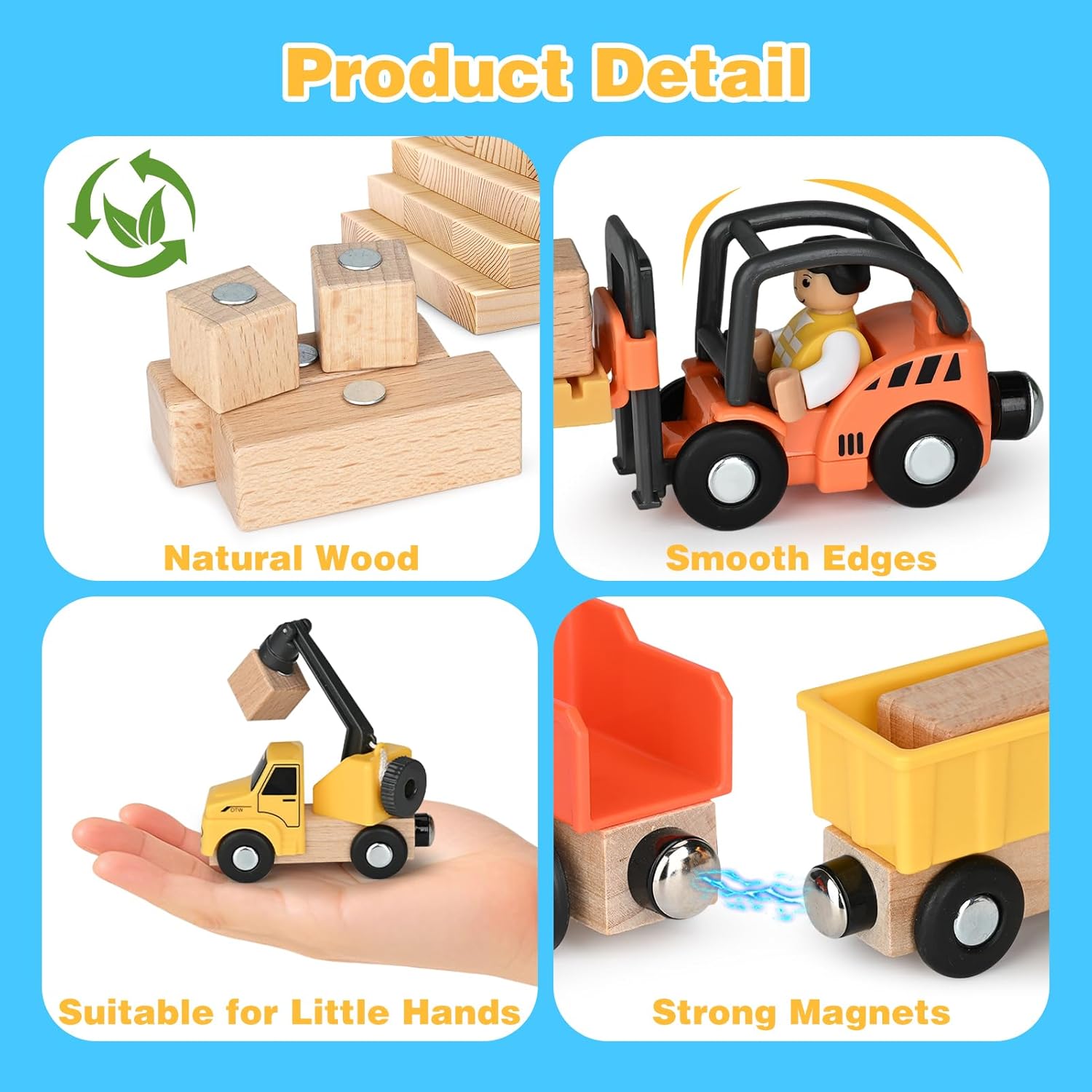 - 【Magnetische Baustellenfahrzeuge Kinder】Container und Fahrzeuge sind mit Magnetverbindungen ausgestattet, ebenso der Kranhaken. So können Kinder einfach be- und entladen und ihre Hand-Auge-Koordination verbessern.