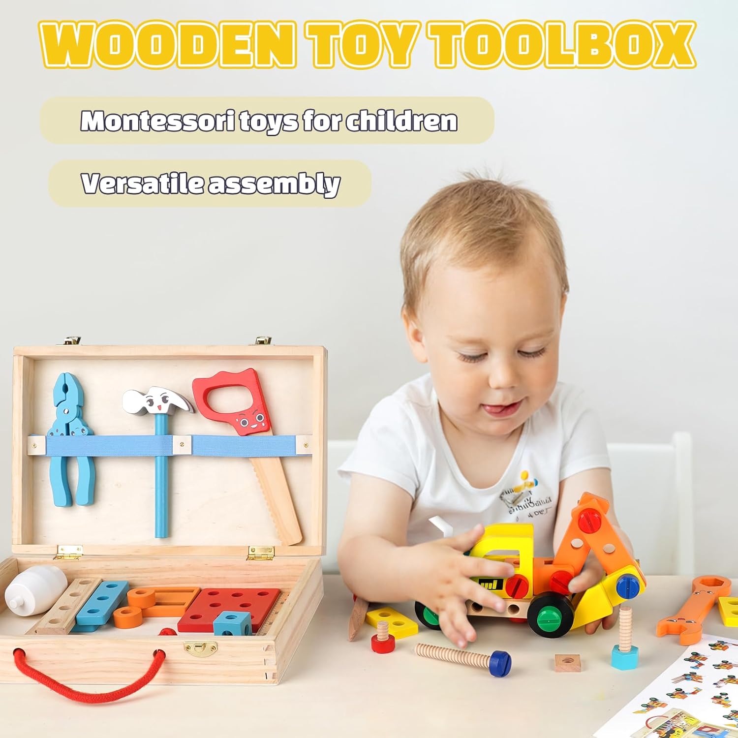 - 【53 Stück Kinderspielzeug Werkzeugkoffer Kinder】Vanplay Fahrzeug Thema kinderwerkzeug enthält eine Holzwerkzeugkiste, Anweisungen, Hammer, Schraubenschlüssel, Säge, Lineal, Schraubendreher, Griff, Bausteine, Schrauben, Muttern und Spielbretter.